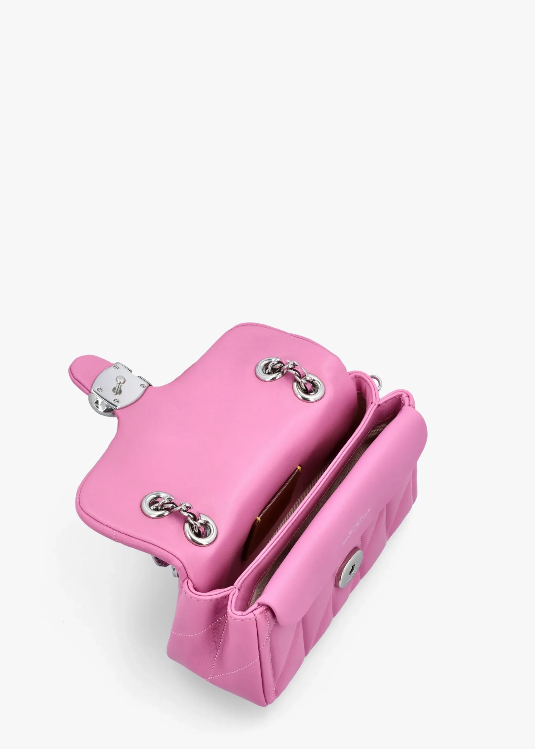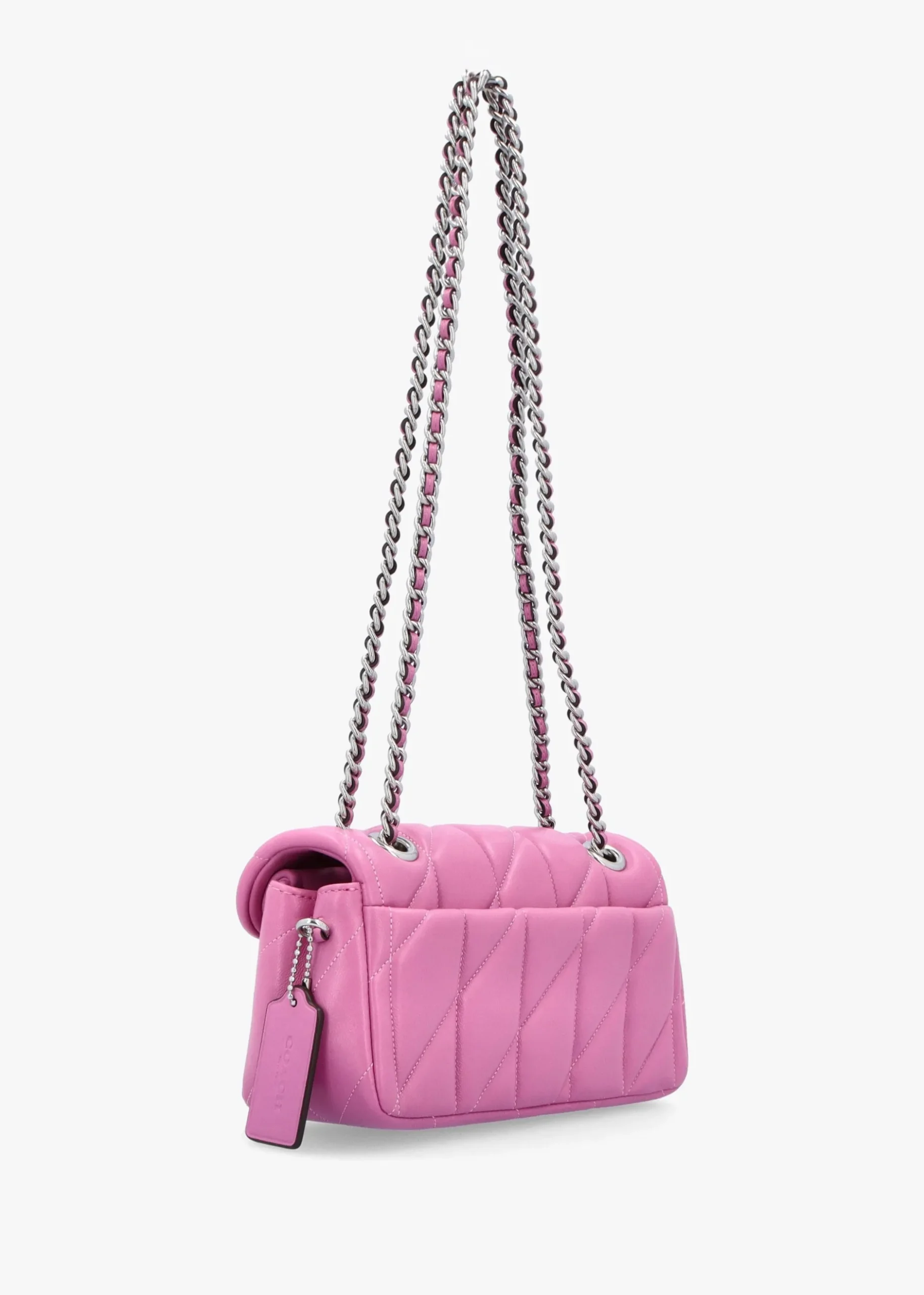Add the ‘Tabby 20 Quilted’ shoulder bag from COACH to your handbag collection this New Season. A versatile style crafted from premium nappa leather in a classic quilted design with silver tone hardware. The secure push lock front flap reveals textile and leather lining, two handy compartments as well as magnetic slot pocket, further exterior slot pocket also features. Iconic ‘C’ logo motif adds detail as well as detachable luggage tag. Wear across the body or on the shoulder. Signature COACH branding is seen throughout.