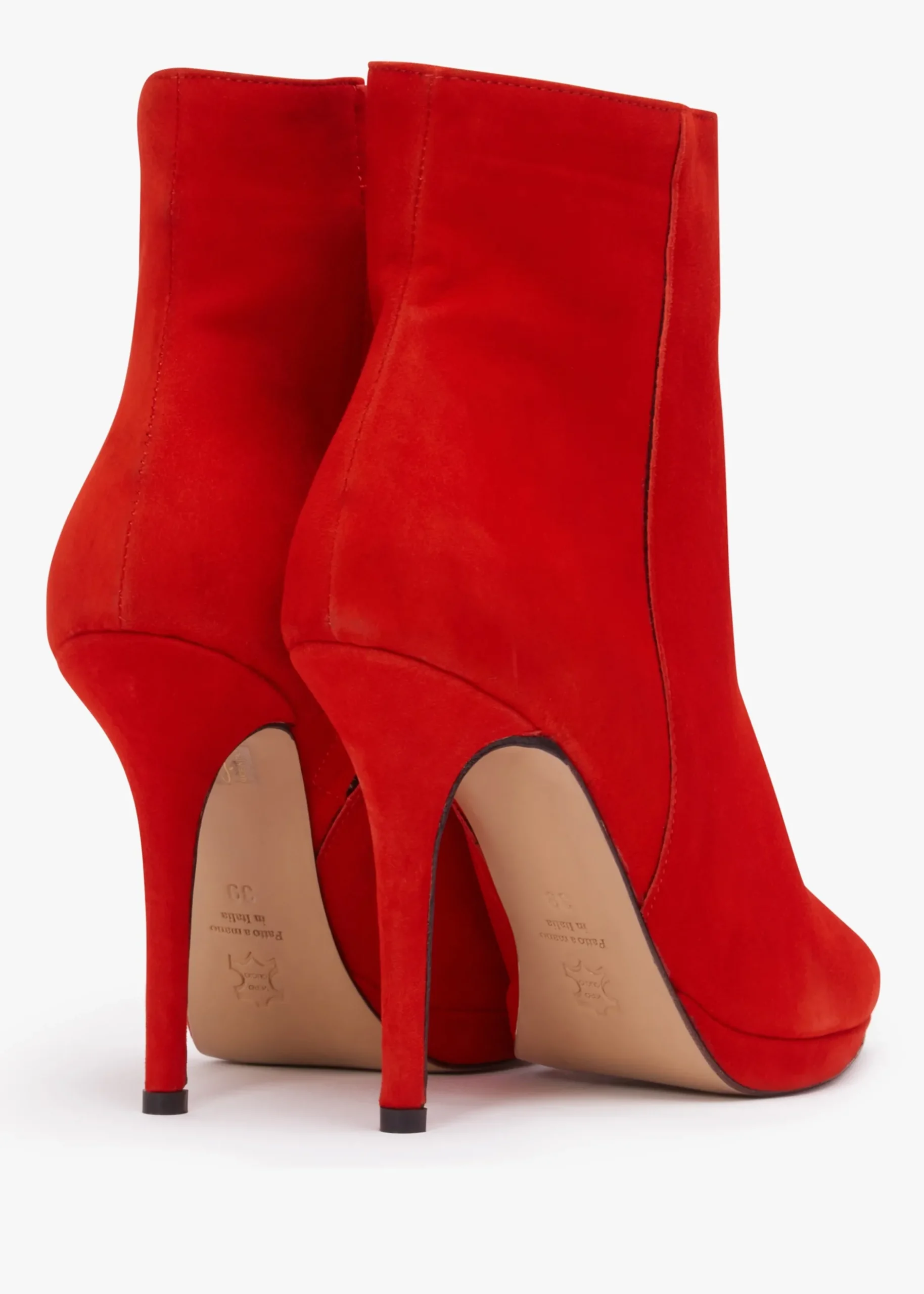 The ‘Abigail’ platform ankle boots are part of the New Season collection from Daniel Footwear. This timeless classic style is crafted from a premium suede upper with luxurious leather lining and sole. Zip fastening to the inner leg creates an easy wear. The pointed toe, low platform and wrapped high heel make up the silhouette. Signature Daniel branding is seen to the foot-bed.
