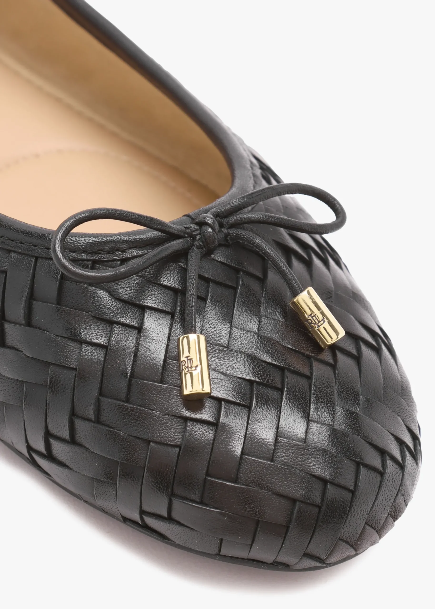 The ‘Jayna Woven’ ballet pumps are part of the New Season collection from Lauren Ralph Lauren. This classic everyday style will see you through Season after Season. Crafted from a premium leather upper in a woven design with cotton lining and a rubber sole. An easy to wear slip on style. The round toe and flat sole make up the silhouette. Debossed logo adds detail as well as leather bow to the upper featuring gold tone ‘LRL’ cord ends. Signature Lauren Ralph Lauren branding is seen to the foot-bed and sole.