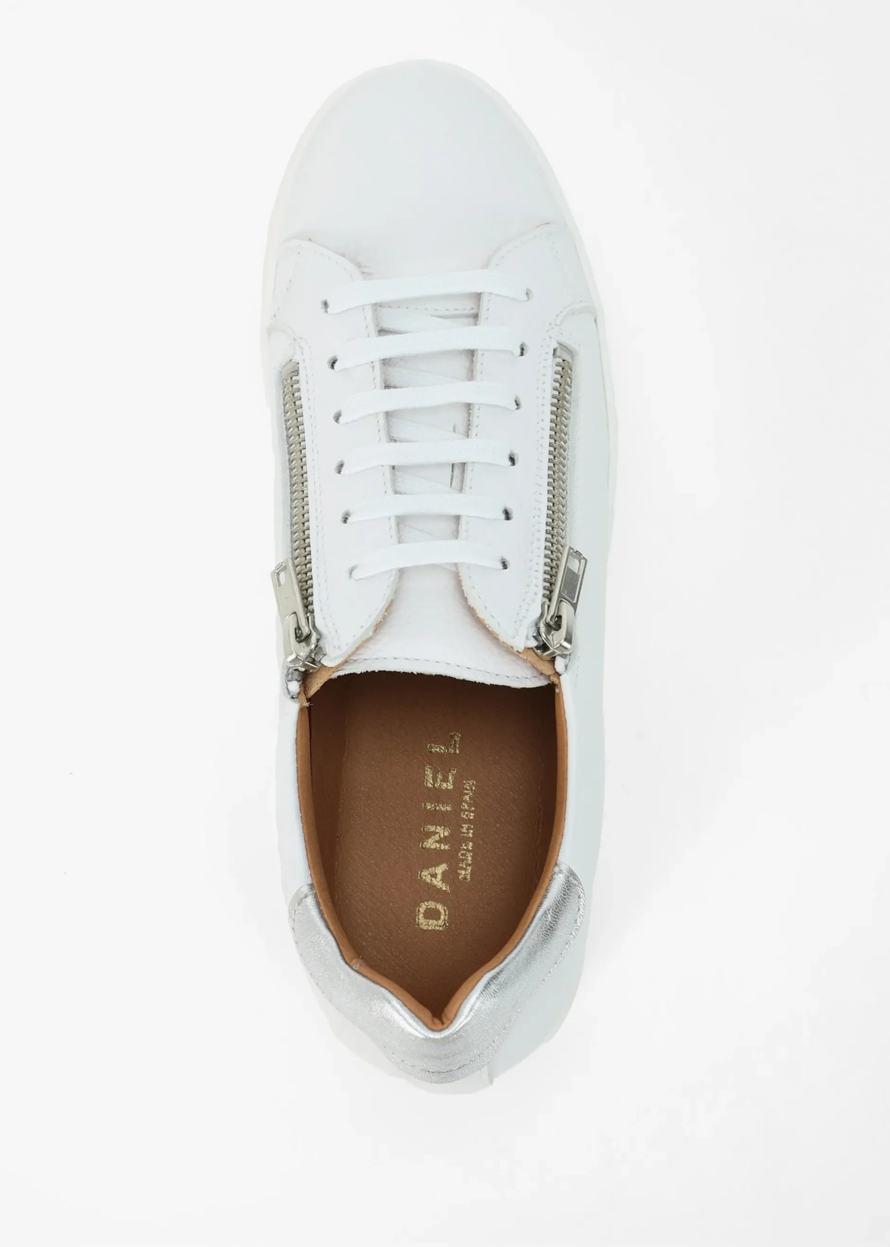 New from Daniel this Season the ‘Tippy’ flatform trainers. This off-duty style is crafted from a premium pebbled leather upper with leather lining, cushioned footbed for added comfort and a flatform sole. The lace up upper ensures the perfect fit and the double zips create an easy wear. Signature Daniel branding is seen to the footbed.