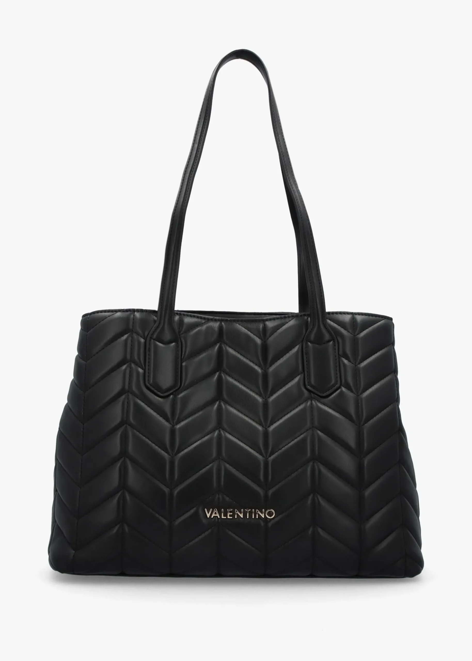The ‘Petal’ shopper bag is part of the New Season collection from Valentino. This timeless style is crafted from premium PU made from part recycled materials in a quilted chevron design with polished gold tone accents. The secure magnetic snap top fastening reveals triple compartments as well as handy inner zip and slot pockets. Carry by the top handles. Signature Valentino branding adds detail throughout.