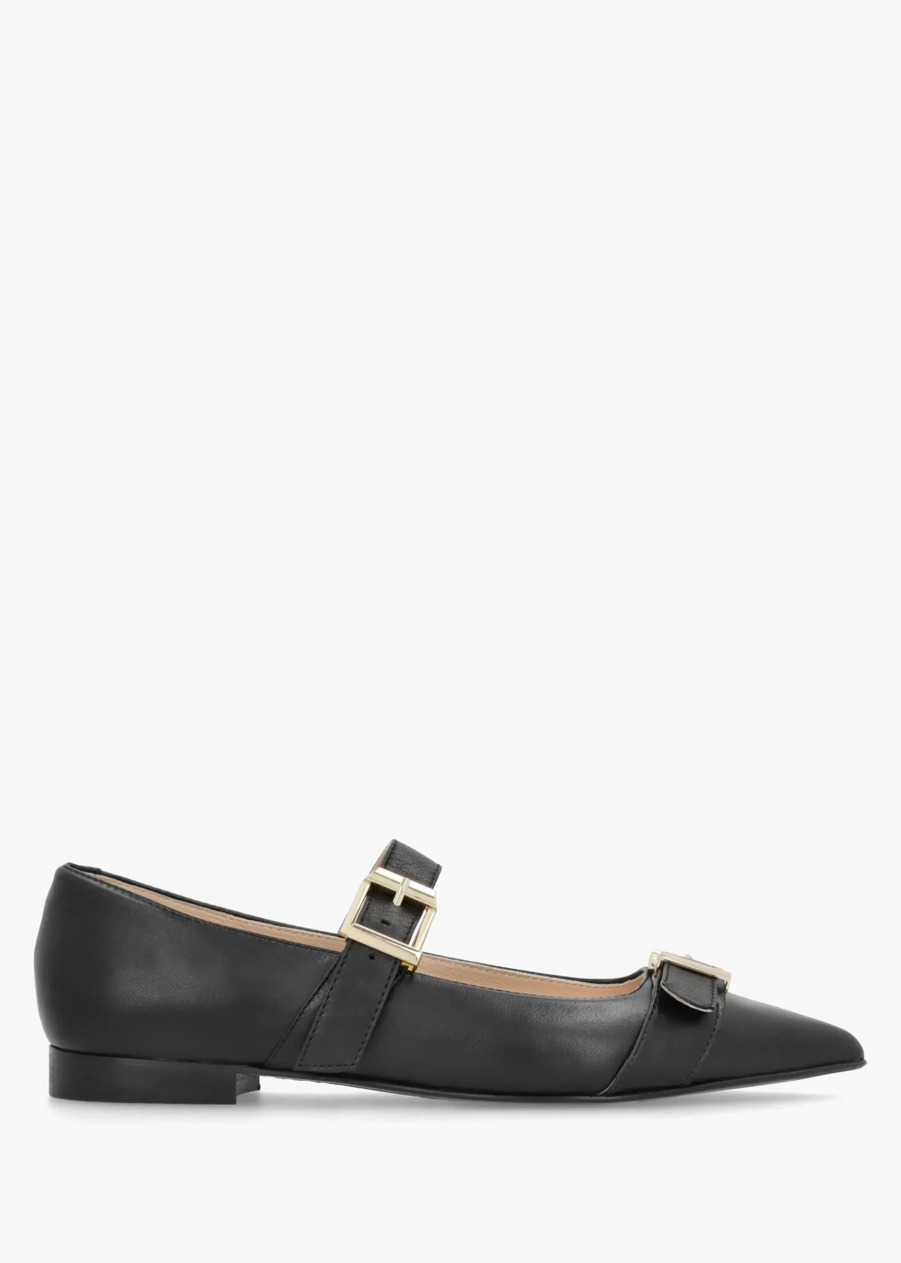The ‘Nancy’ flat pumps are part of the New Season collection from Daniel. This simple everyday wear with anything style is crafted from a premium smooth leather upper with luxurious leather lining and a part leather sole. An easy to wear slip on style featuring buckle fastening strap. Further buckle detail features to the pointed toe. Signature Daniel branding is seen to the footbed.