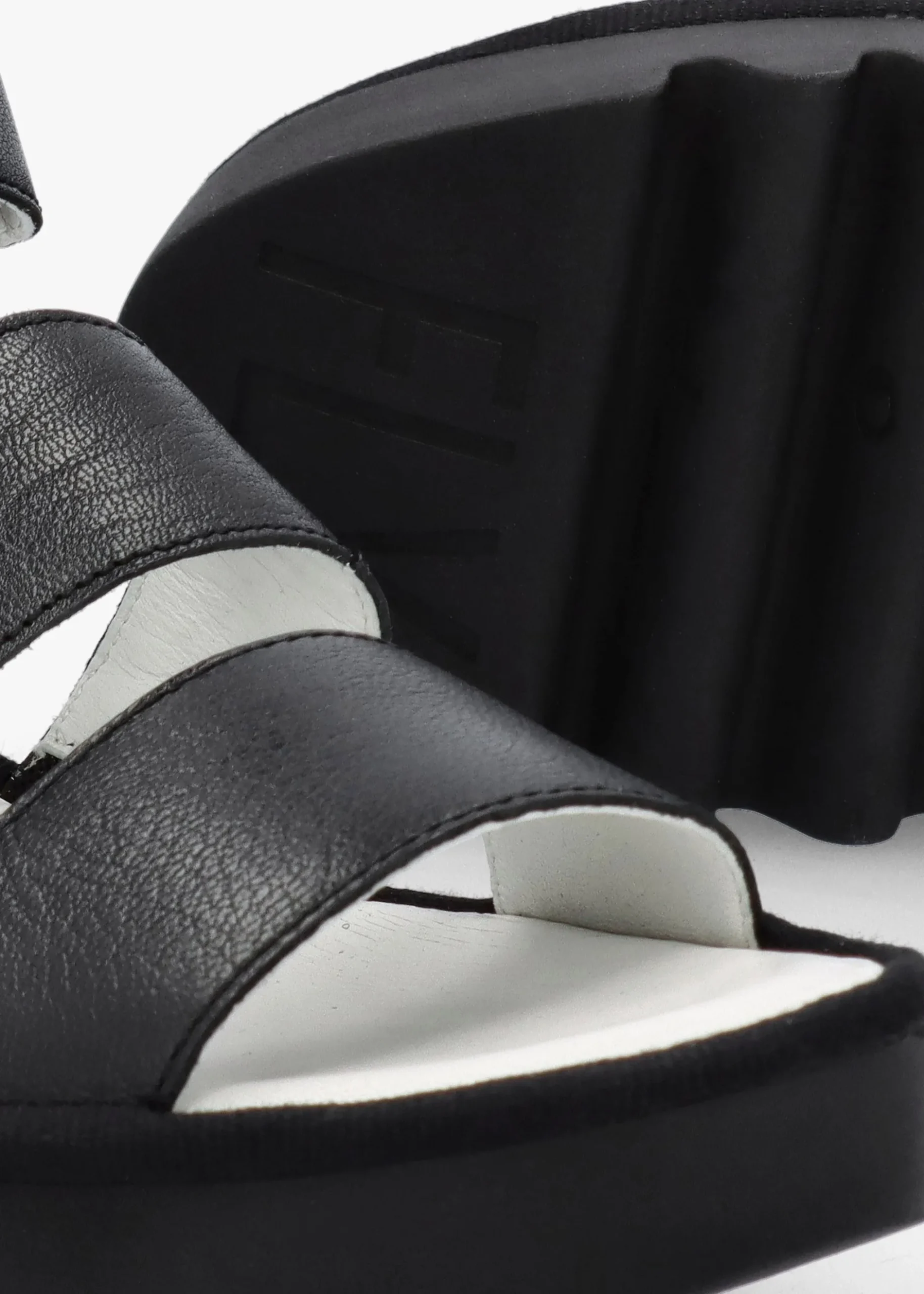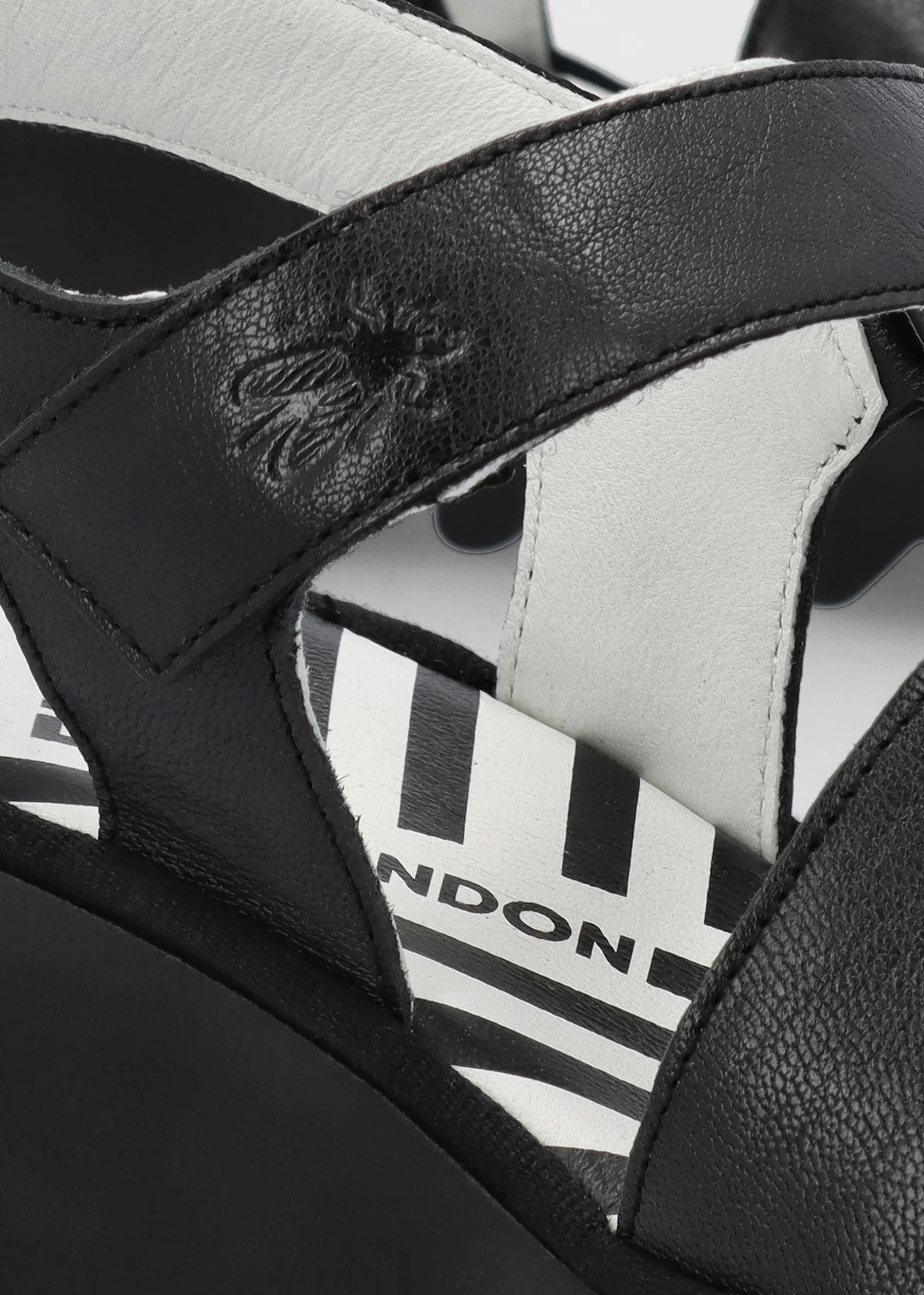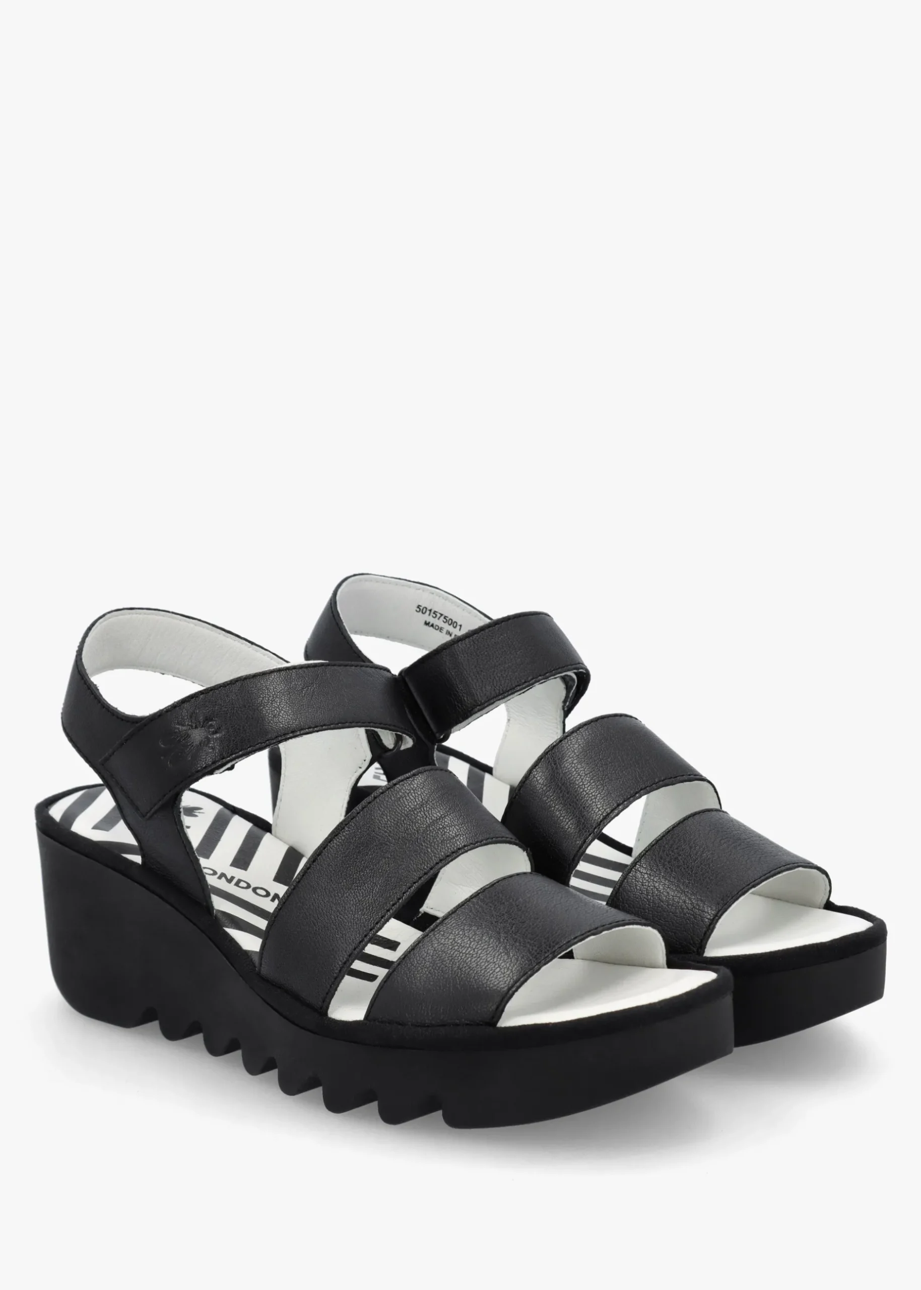 Add the ‘Bexy’ sandals from Fly London to your Summer wardrobe. This New Season everyday style is crafted from a premium smooth leather upper in a colour block design with leather lining, cushioned footbed and a chunky mid wedge cleated sole. An easy to wear slip on style featuring velcro fastening ankle strap. Classic debossed ‘Fly’ logo adds detail. Signature Fly London branding is seen to the footbed and sole.