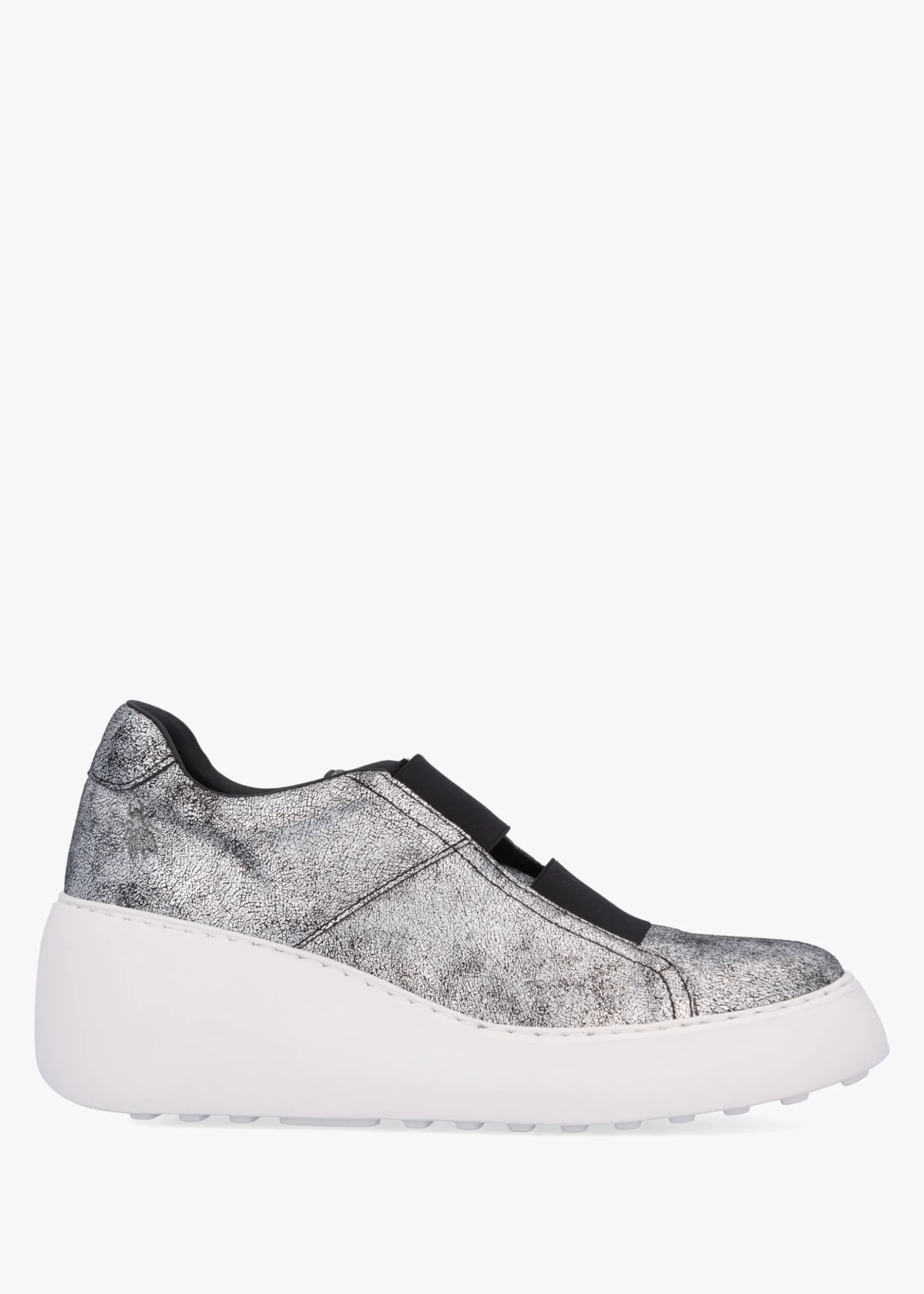 The ‘Dito II’ trainers from Fly London are a fashion sporty style and a welcome addition to your off-duty wardrobe. This New Season style is crafted from premium cracked leather with part leather lining and rubber sole. The round toe and wedge sole make up the silhouette. An easy to wear slip on style featuring elasticated inserts to the upper. Classic embossed logo adds detail. Signature Fly London branding is seen throughout.