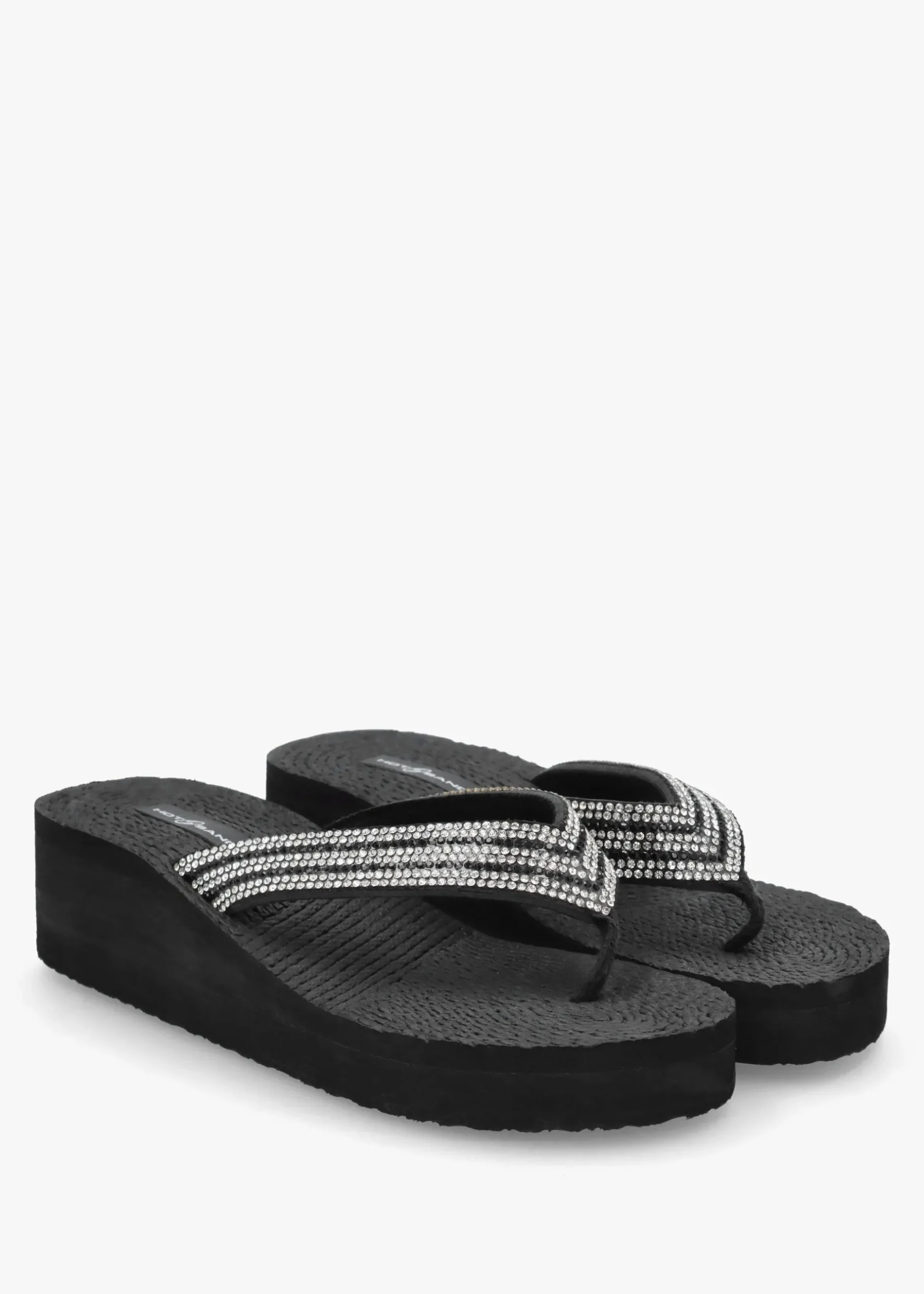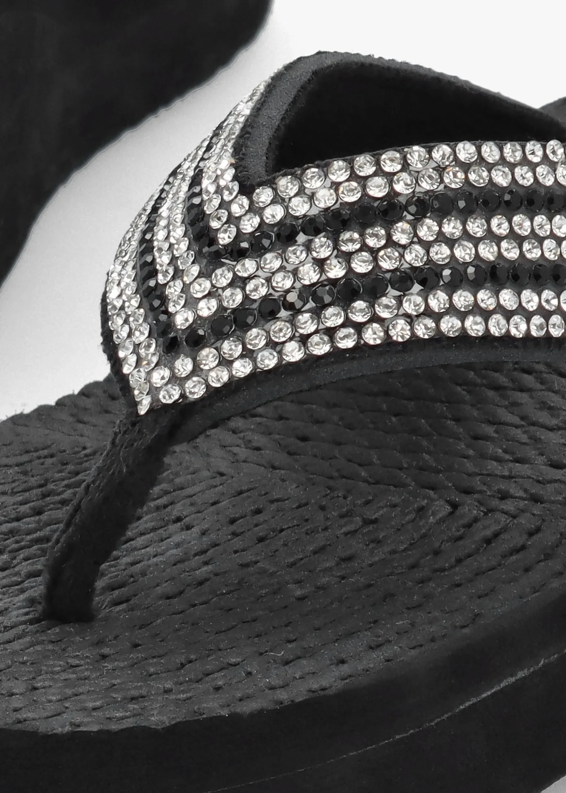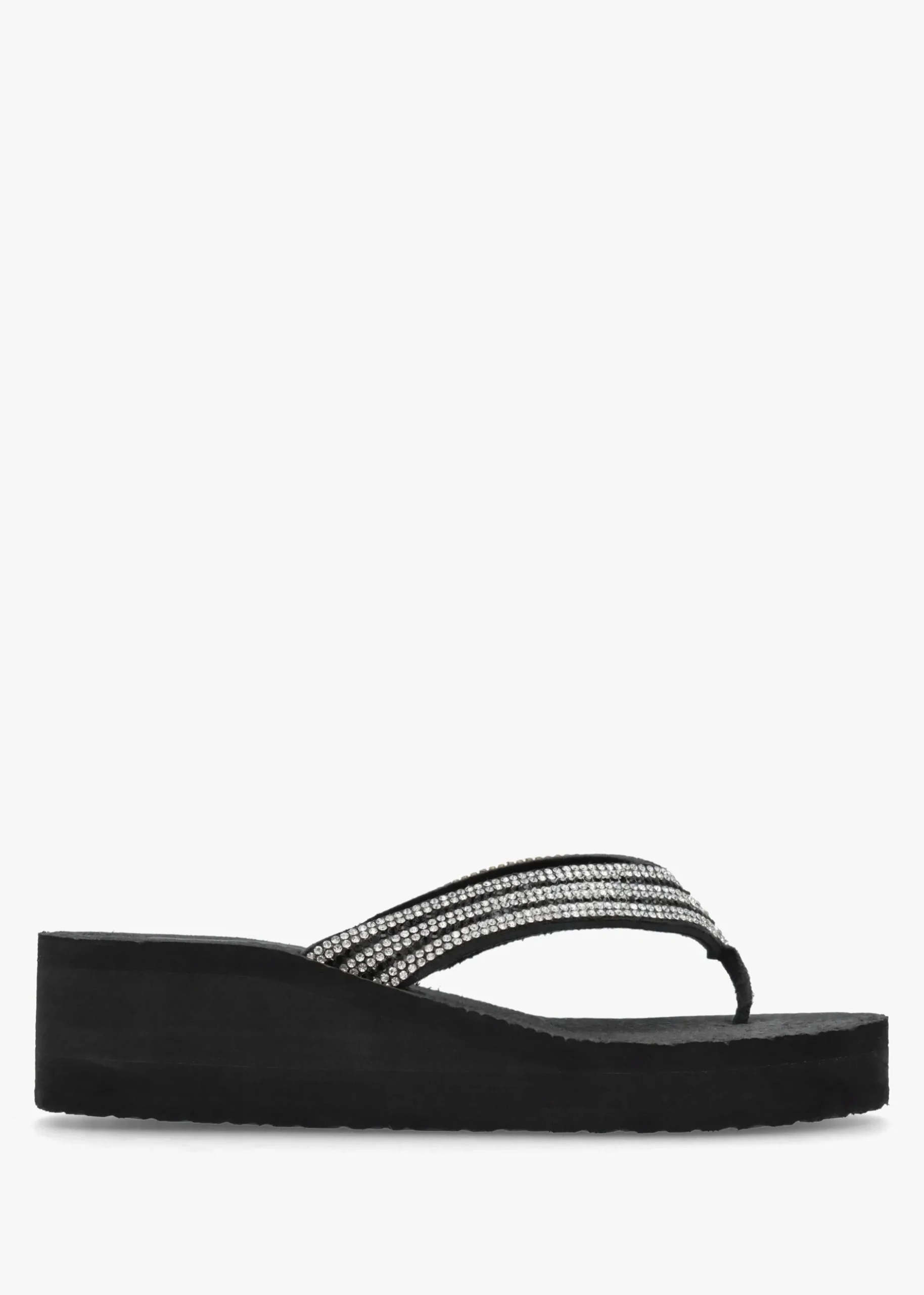 Add these chunky wedge flip flops with a twist to your Summer wardrobe, perfect for off-duty and beach days. An easy to wear slip on style featuring thong toe post. Statement jewel embellishment adds detail to the straps. Signature Hot Sand branding is seen to the footbed.