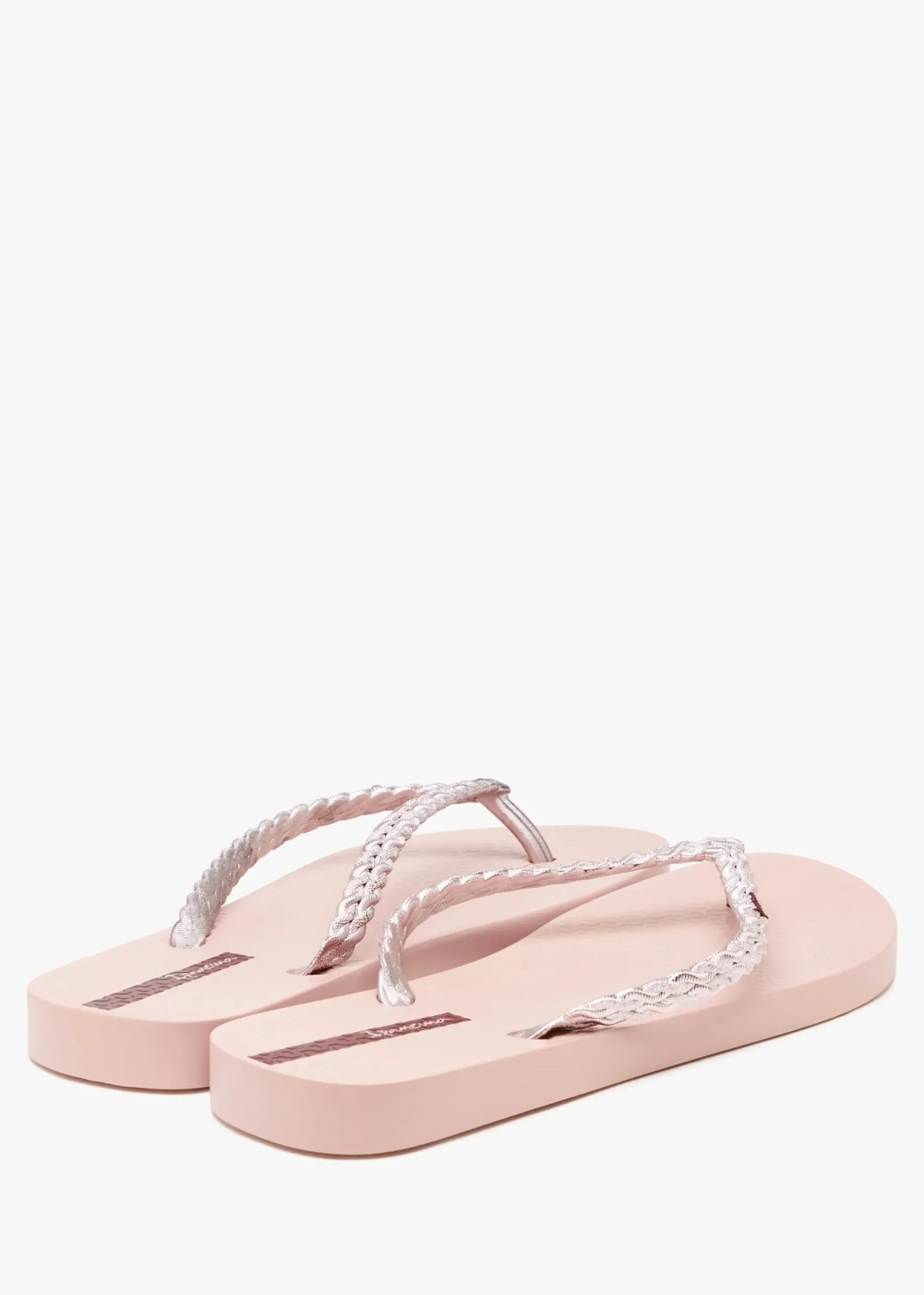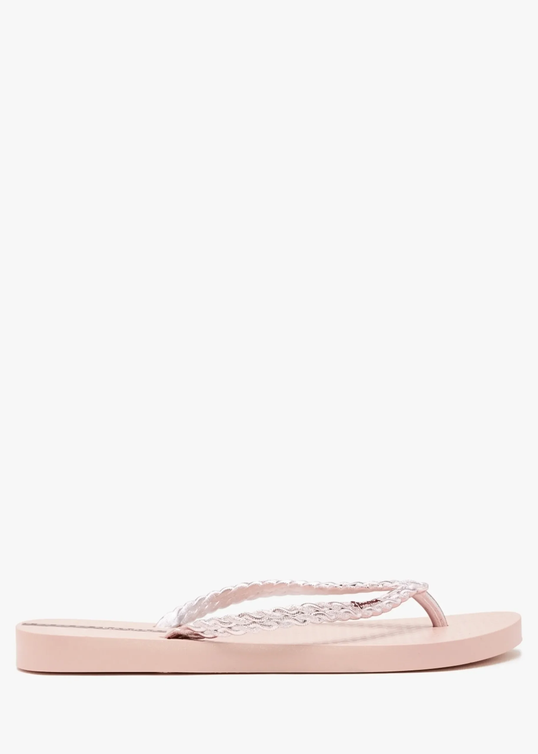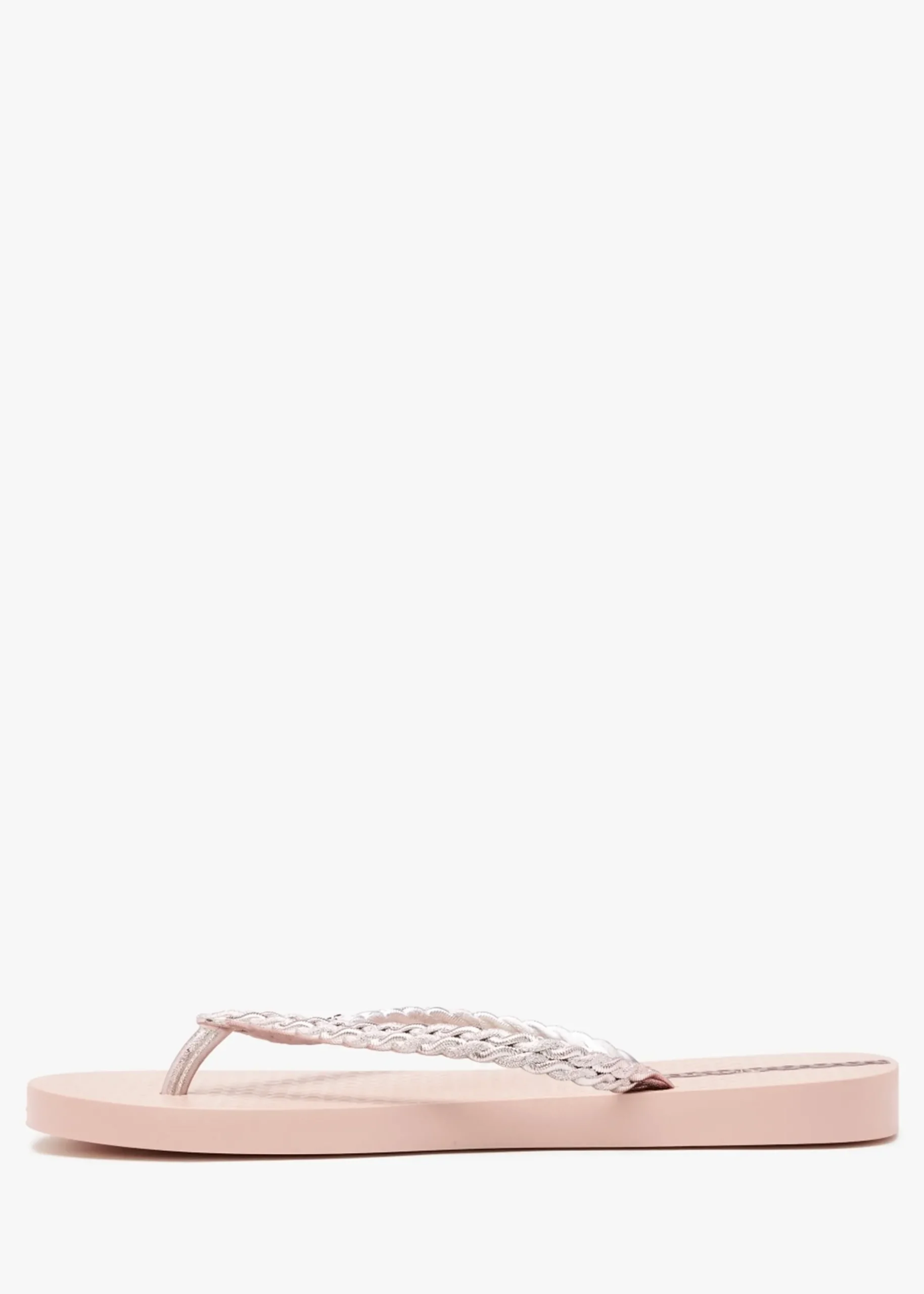 The ‘Exuberance Chrome’ flip flops from Ipanema are a great basic for the Summer Season. A vegan friendly style crafted from recycled flexpand. An easy to wear classic slip-on toe post style featuring plaited detail. The unmistakable ‘Ipanema’ sidewalk pattern is embossed to the foot-bed, contrasting logo adds detail to the strap and foot-bed.