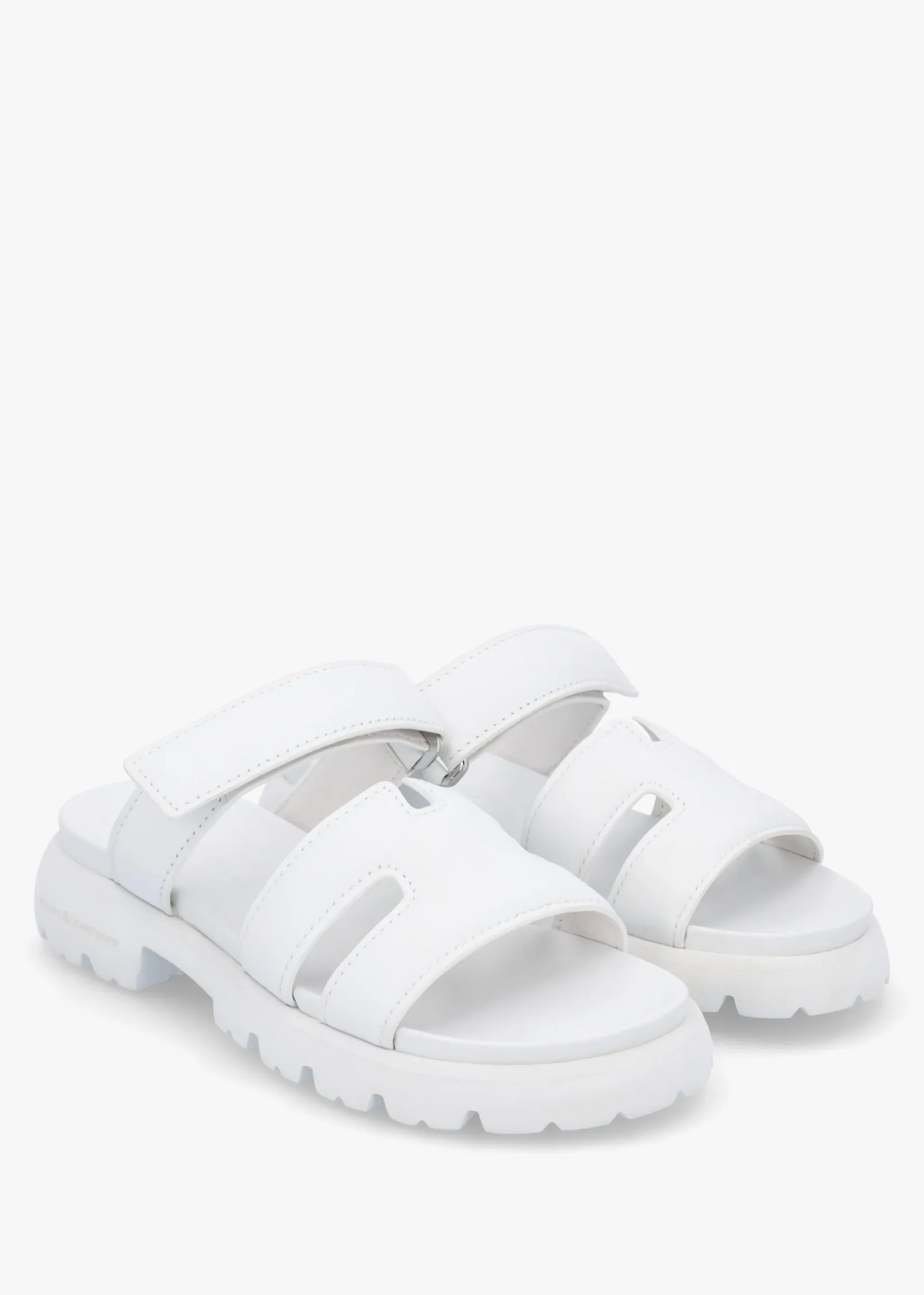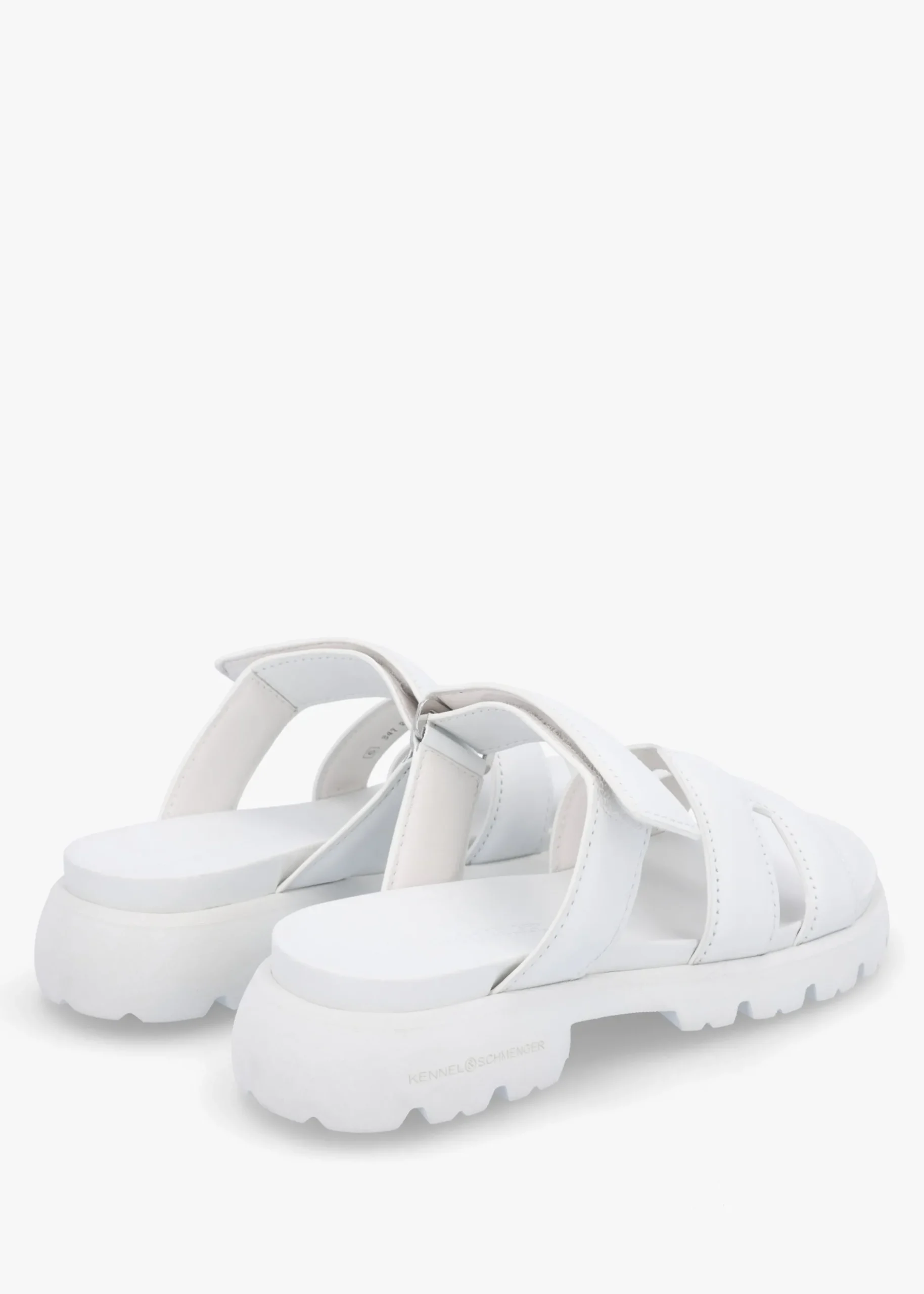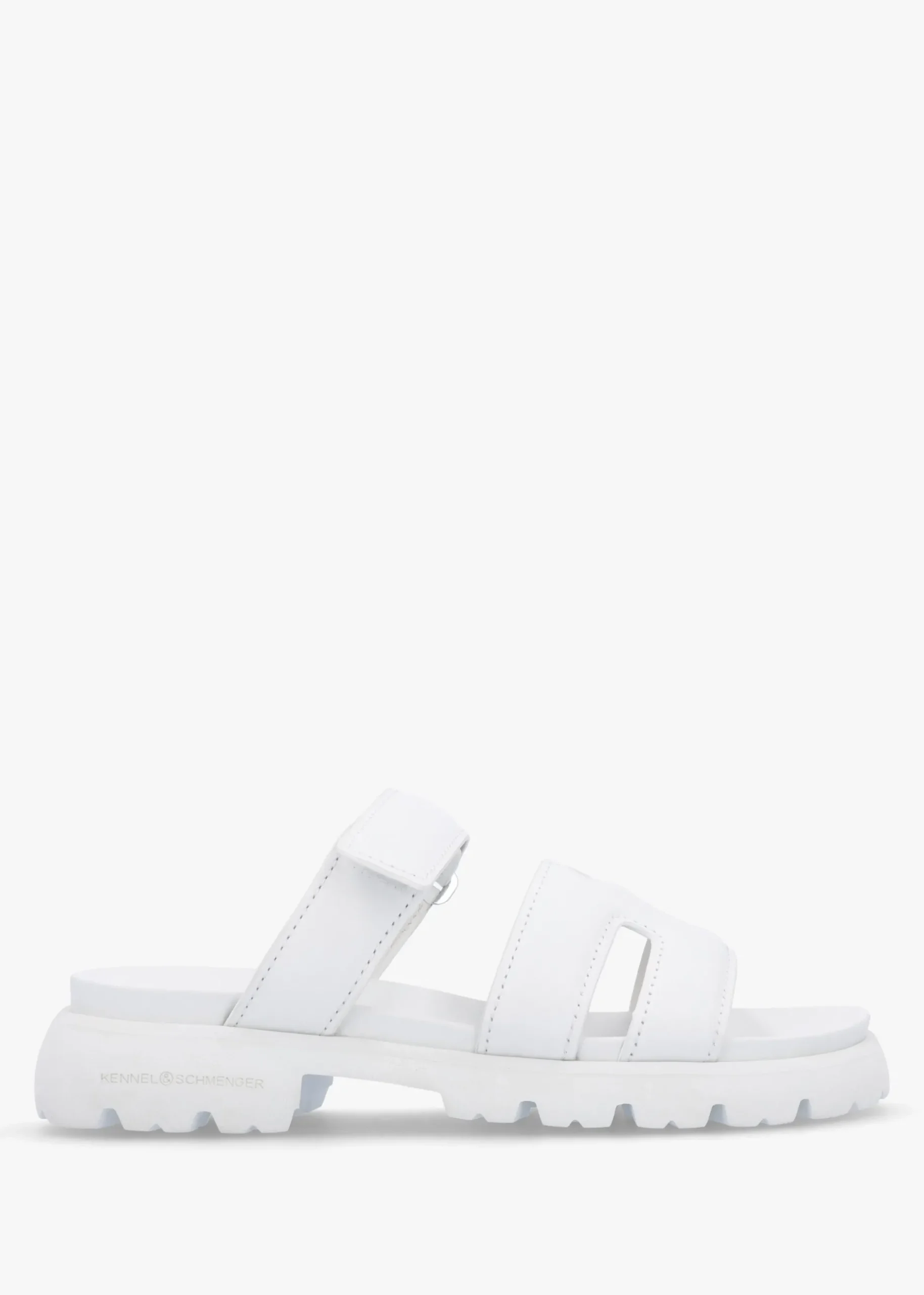 Add the chunky ‘Skill’ mules from Kennel & Schmenger to your Summer wardrobe. This New Season style is crafted from premium soft leather with luxurious leather lining and a tracked rubber sole. Pillowy cut away design features to the upper. An easy to wear slip on style with velcro fastening. Signature Kennel & Schmenger branding is seen throughout.