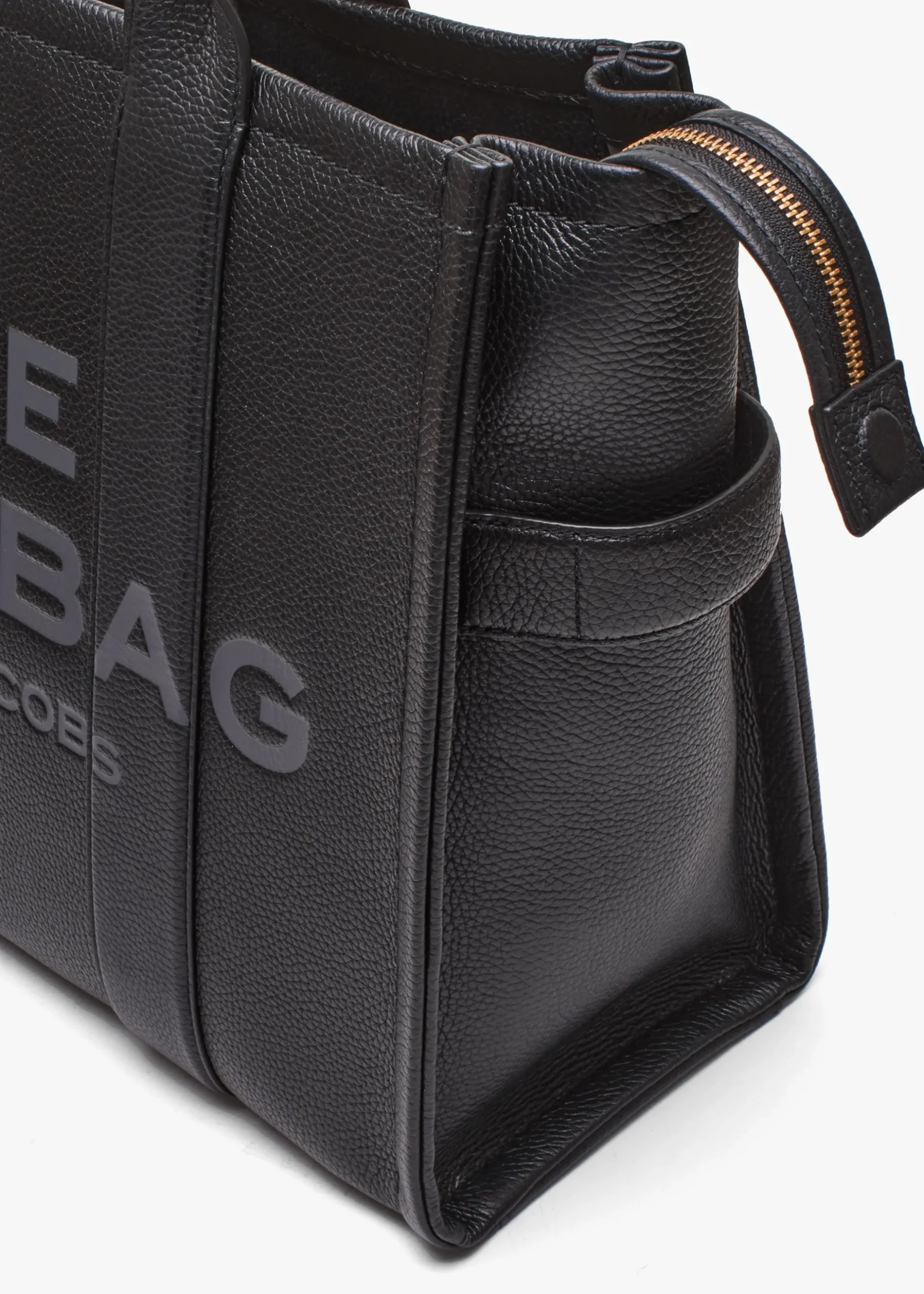 Add ‘The Leather Large’ tote bag from Marc Jacobs to your handbag collection. This go to carryall style is crafted from a premium full grain leather featuring gold tone accents. The secure top zip fastening reveals the main compartment and handy inner zip and slot pockets. Carry by the grab handles. Classic embossed branding is seen to the front of the bag. Signature Marc Jacobs branding is seen throughout.
