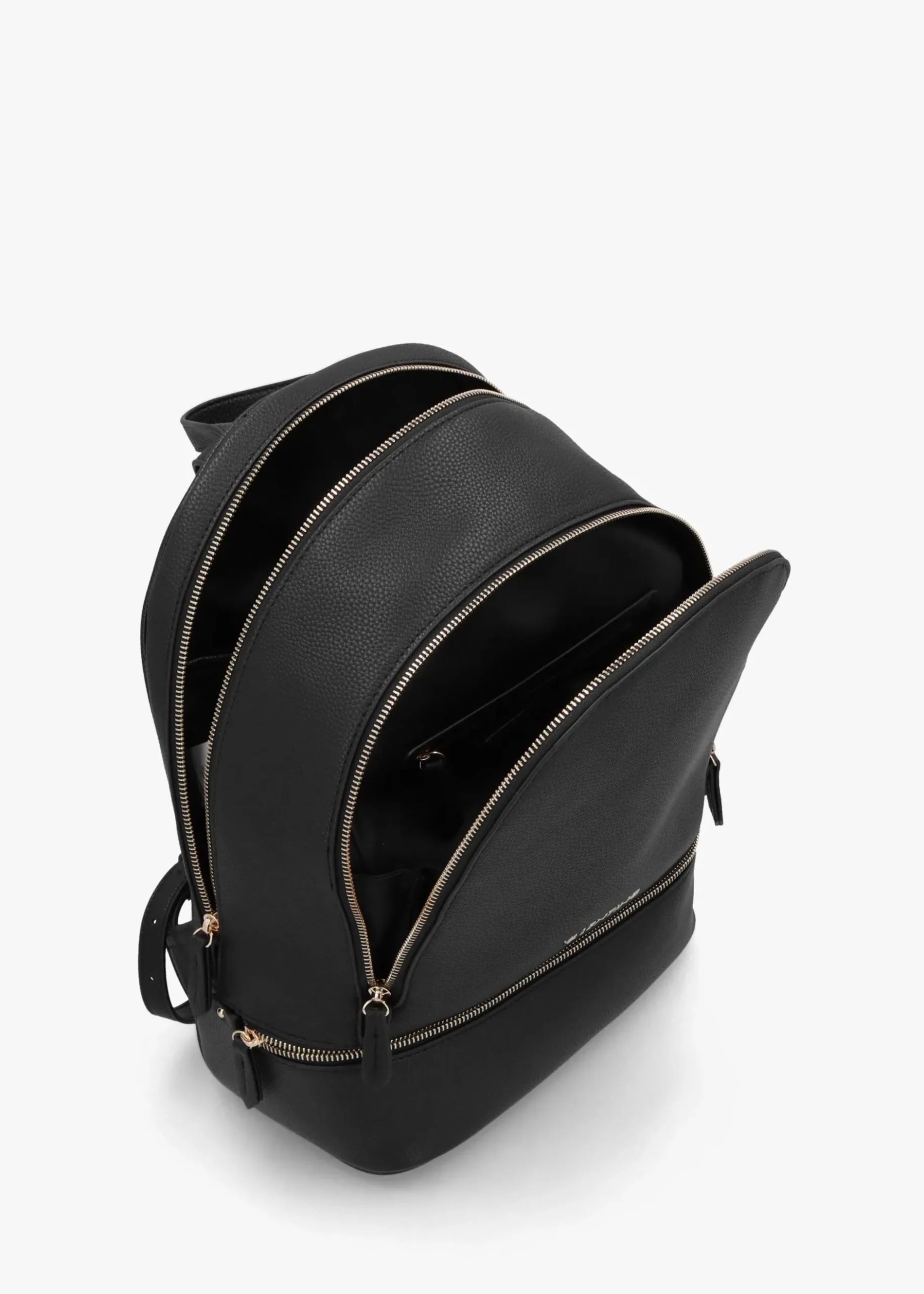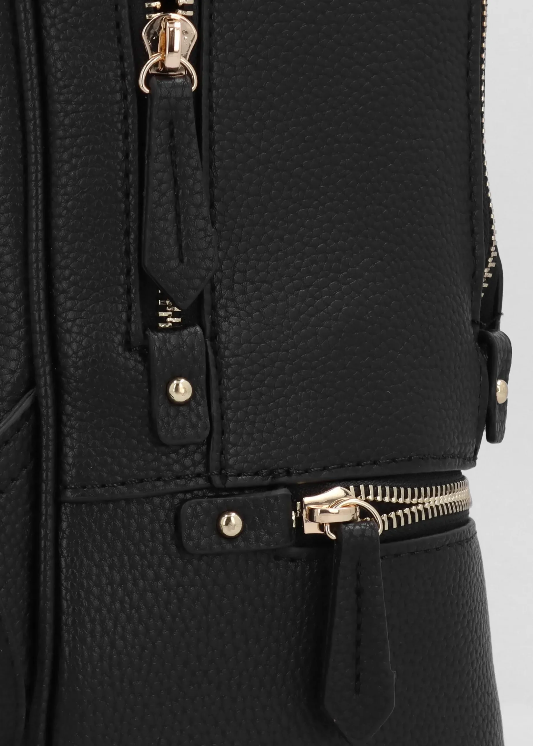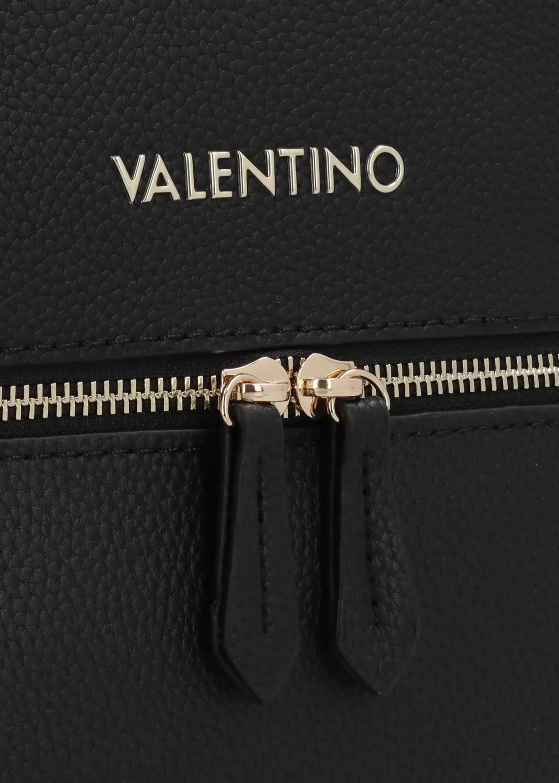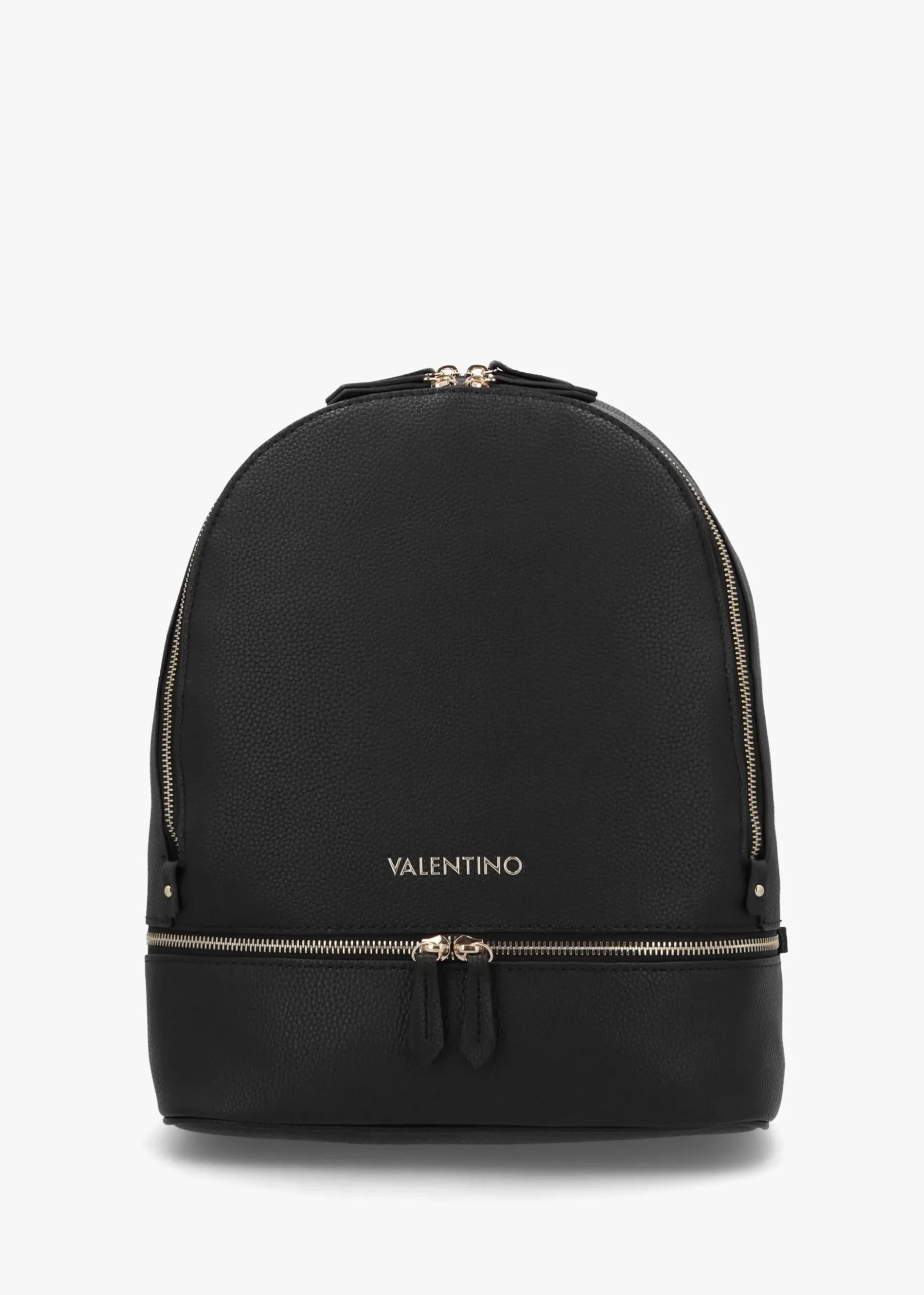 Go hands free this Season with the ‘Brixton’ backpack from Valentino. This practical yet stylish bag is crafted from premium pebbled PU with polished gold tone accents. The secure zip around fastening reveals the main compartment with inner laptop compartment, front zip pocket also features. Carry by the top handle or the adjustable straps. Signature Valentino branding adds detail throughout.