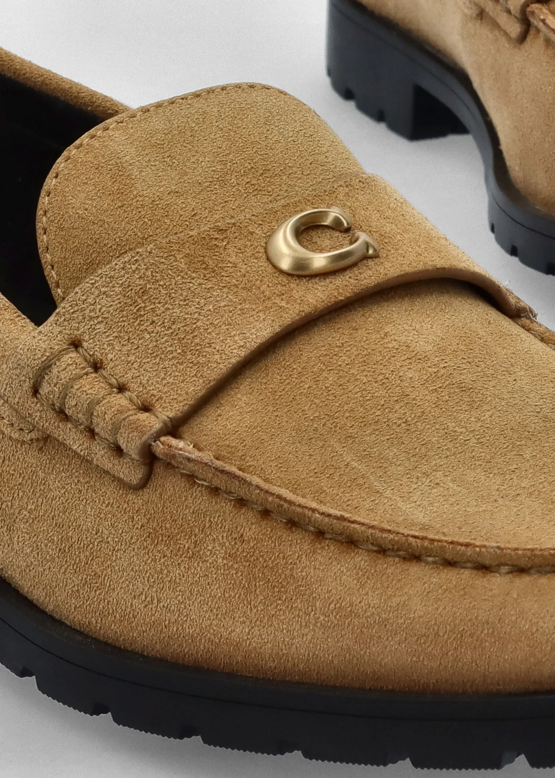 The wear anywhere ‘Jocelyn’ loafers are part of the New Season collection from COACH. Crafted from a premium suede upper with part leather lining and a tracked rubber sole. An easy to wear slip on silhouette. Classic gold tone ‘C’ logo motif adds detail to the upper. Signature COACH branding is seen to the footbed.