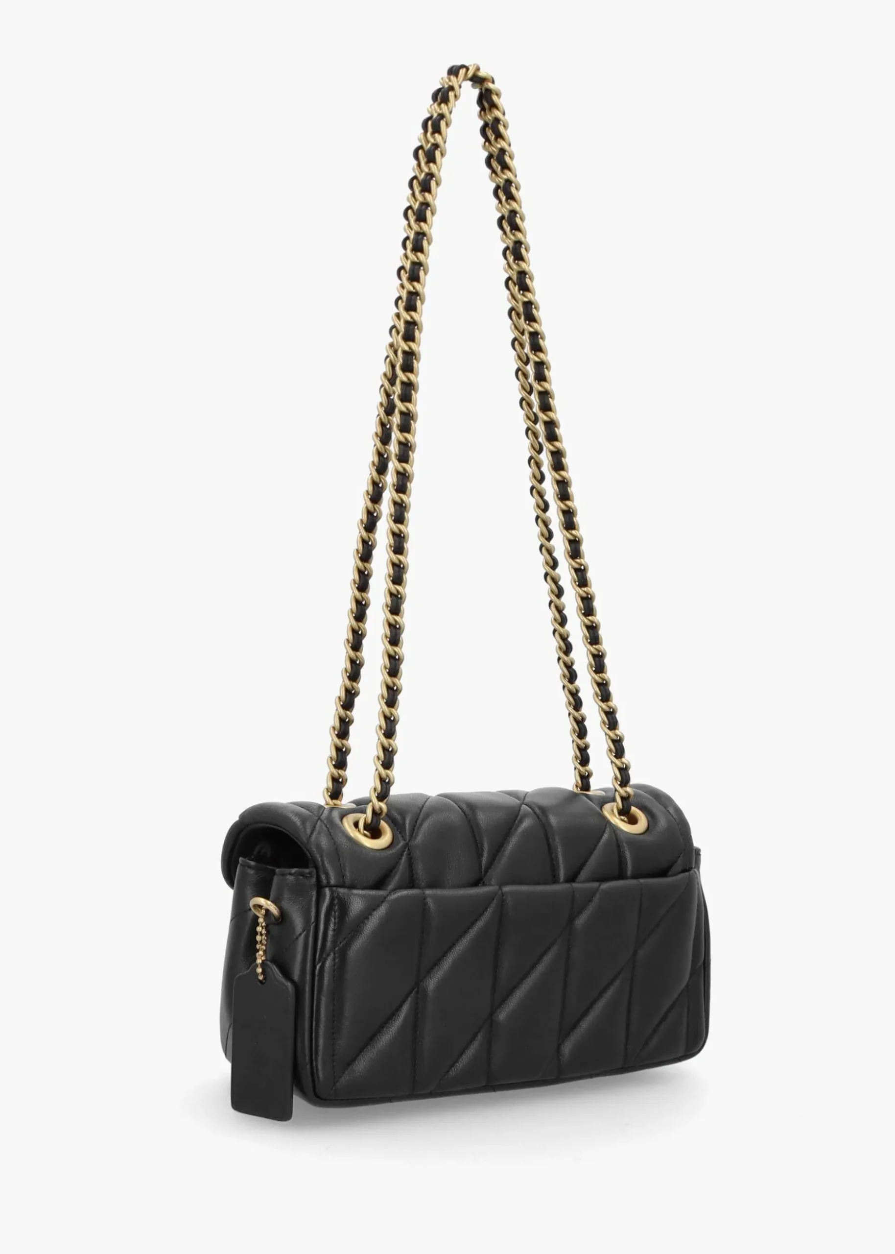 Add the ‘Tabby 20 Quilted’ shoulder bag from COACH to your handbag collection this New Season. A versatile style crafted from premium soft nappa leather in a classic quilted design with brass gold tone hardware. The secure push lock front flap reveals textile and leather lining, two handy compartments as well as magnetic slot pocket, further exterior slot pocket also features. Iconic ‘C’ logo motif adds detail as well as detachable luggage tag. Wear across the body or on the shoulder. Signature COACH branding is seen throughout.
