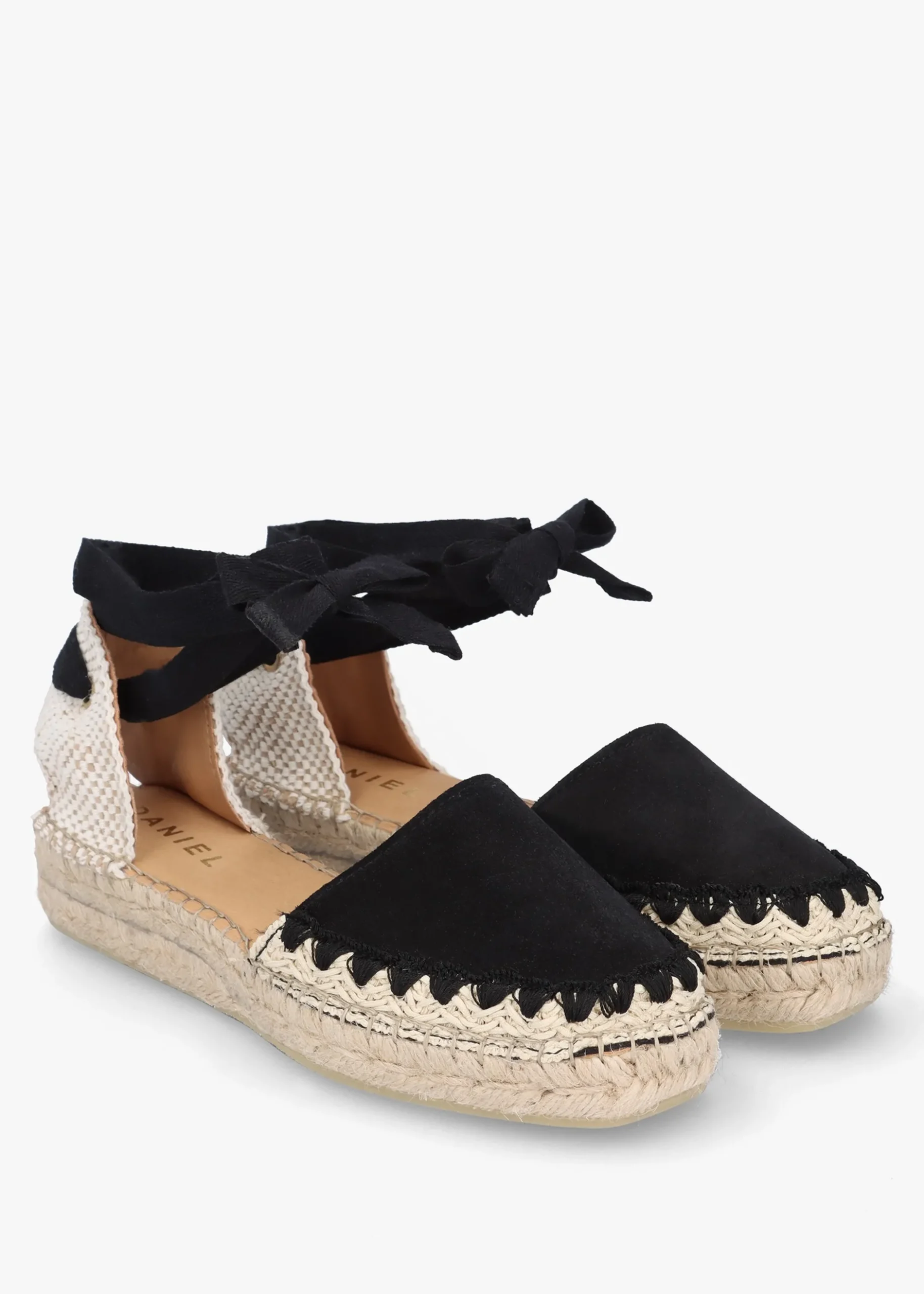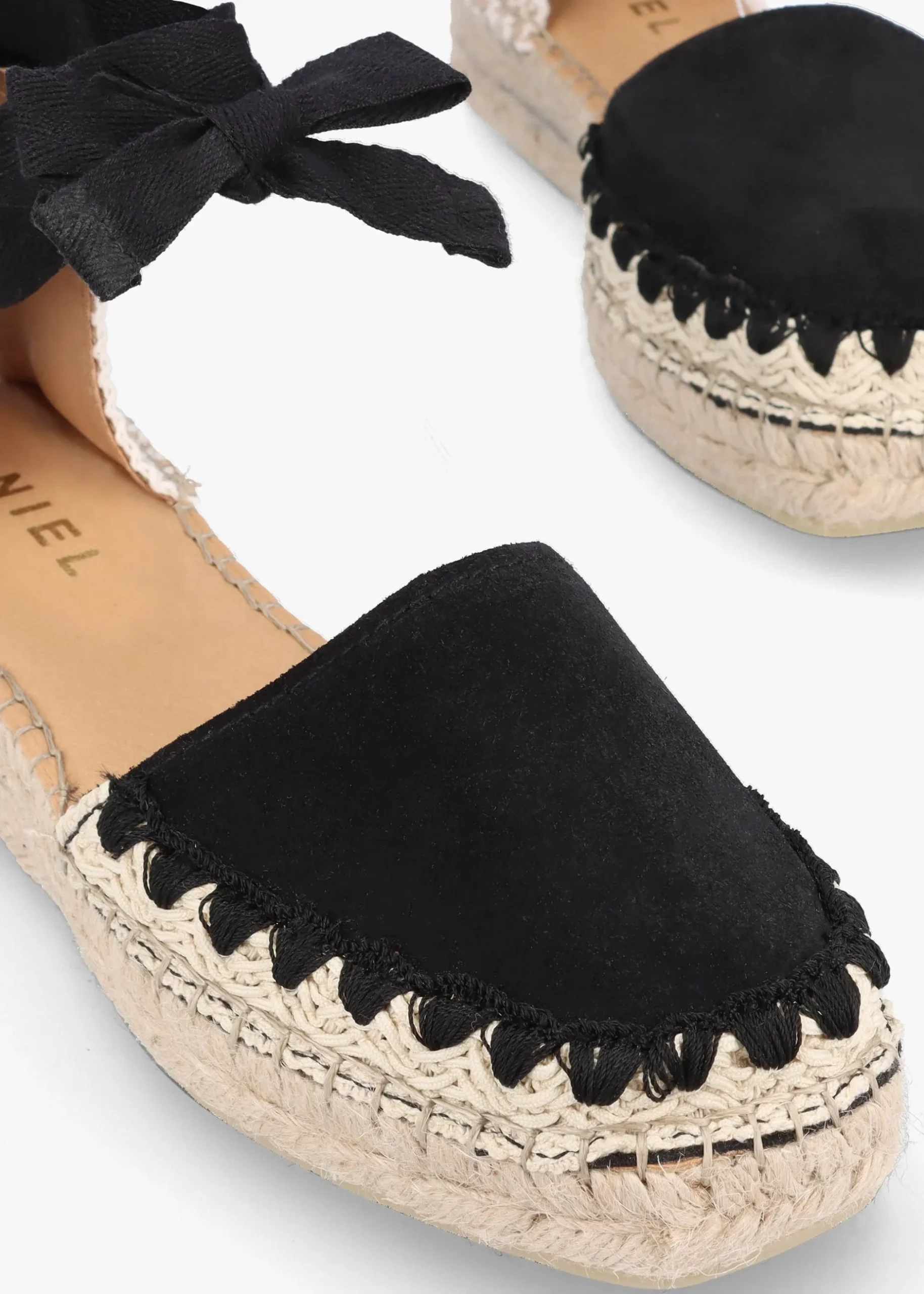 Add the ‘Istitch’ flat espadrilles from Daniel Footwear to your Summer wardrobe. This New Season style is crafted from a premium suede upper with leather lining, jute trim and a rubber sole. An easy to wear slip on style featuring tie fastening to the ankle. The round toe and flat sole make up the silhouette. Signature Daniel branding is seen to the foot-bed.