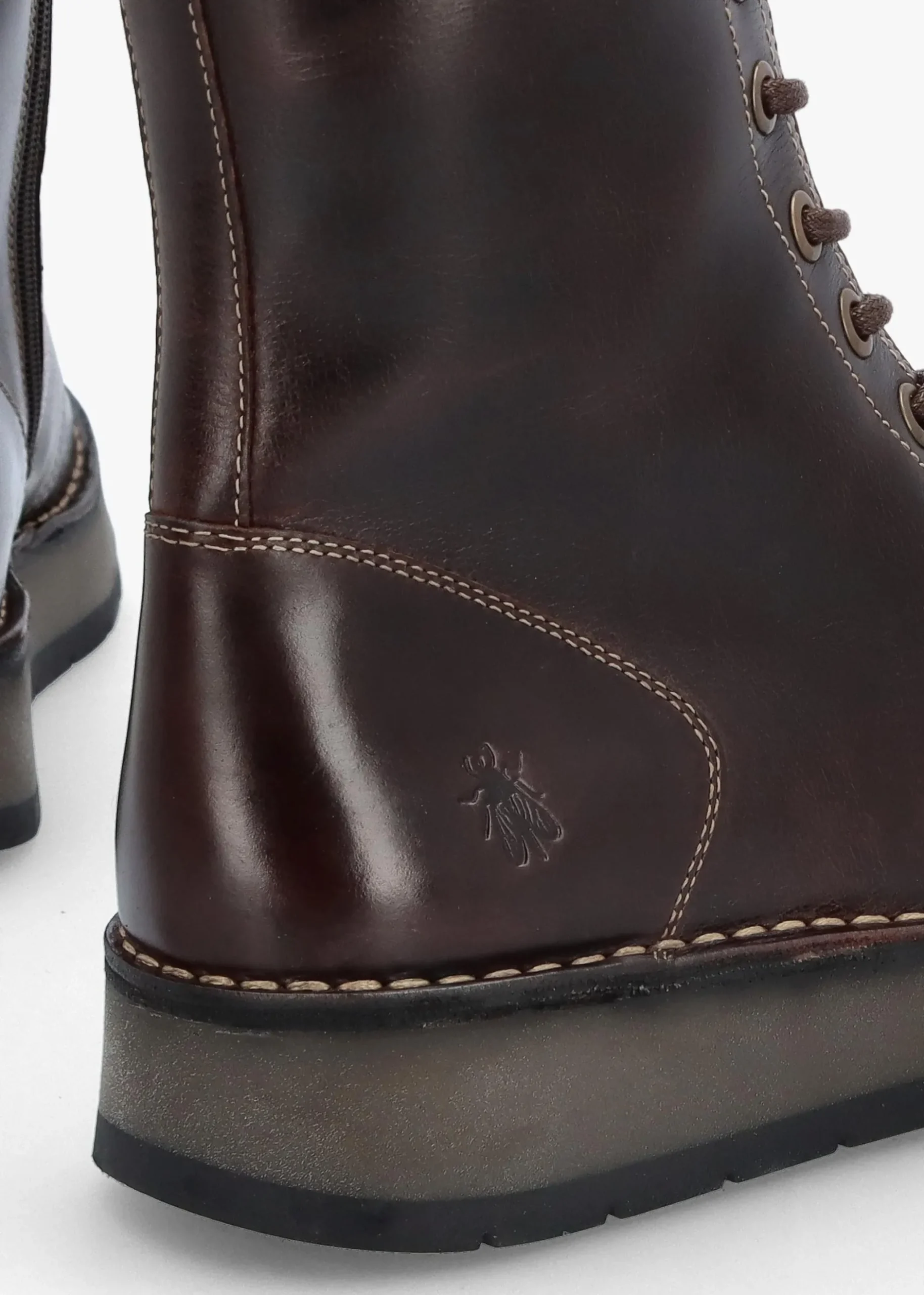 Add the ‘Rami’ ankle boots from Fly London to your boot collection. This everyday style is crafted from a premium leather upper with patterned microfiber lining and a comfy rubber sole. Zip fastening to the inner leg creates an easy wear and the lace up upper endures the perfect fit. The round toe and flat sole make up the silhouette. Contrasting top stitching, raised seaming, pull tab to the top-line and debossed ‘Fly’ logo add detail. Signature Fly London branding is seen to the footbed and sole.