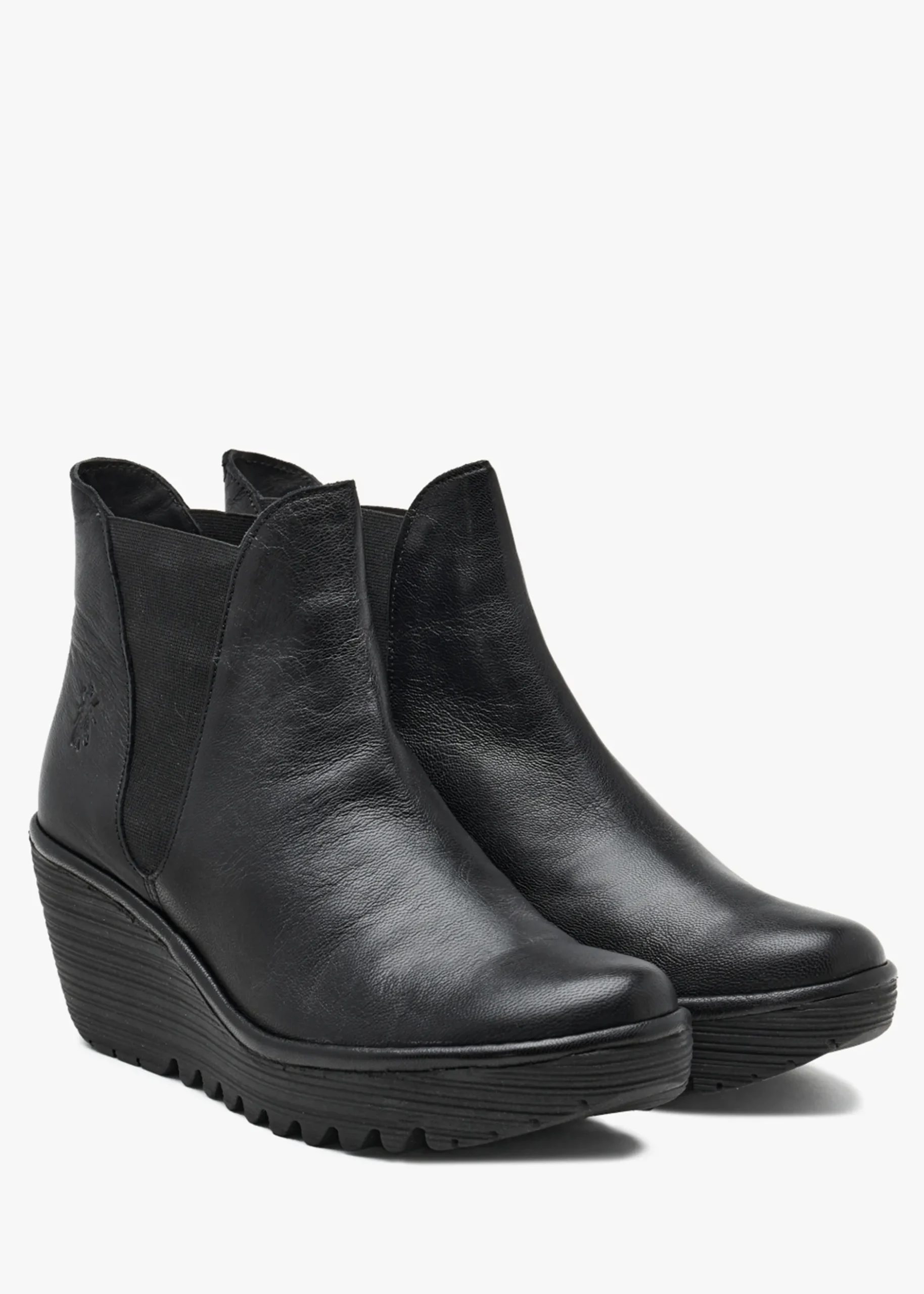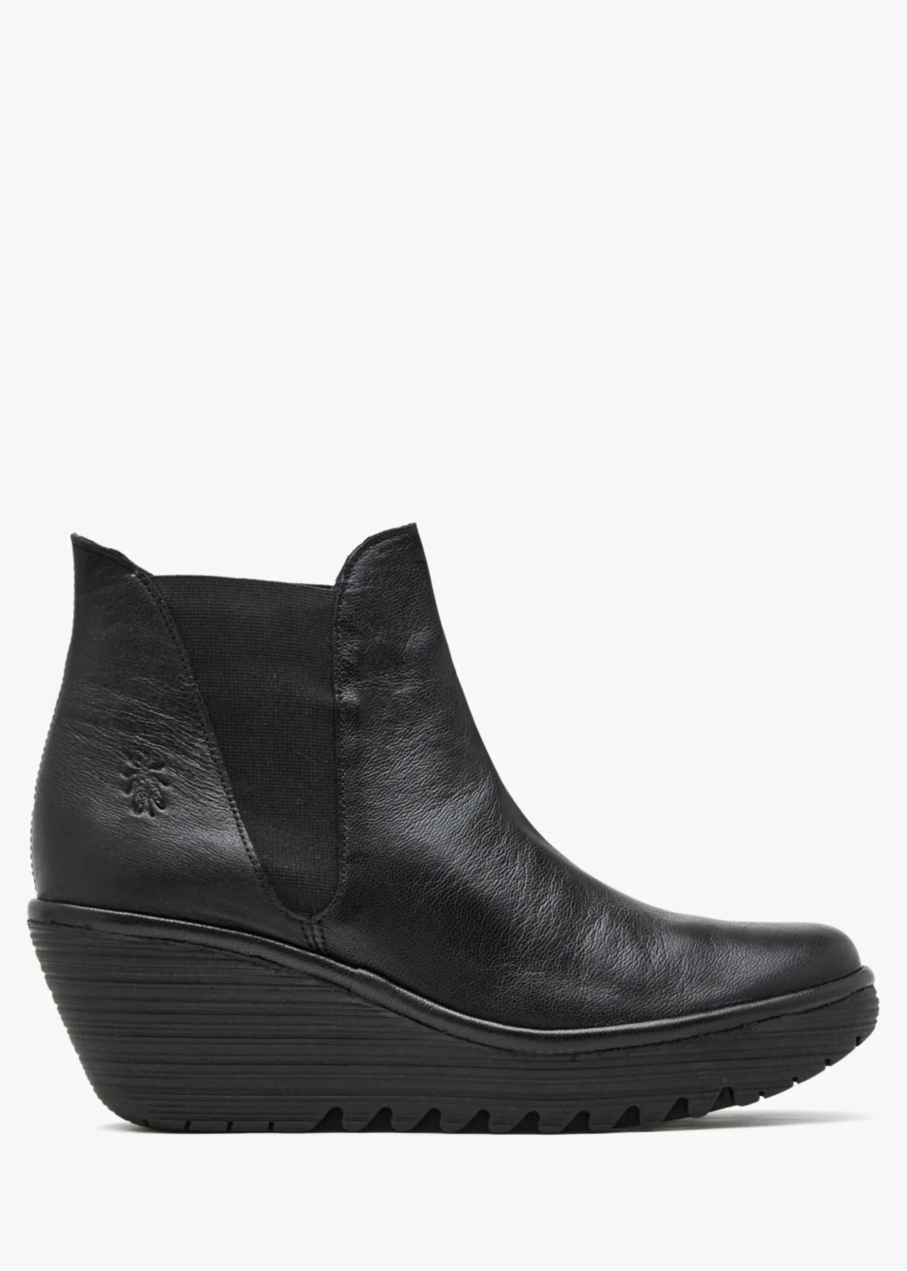 This practical pair of women’s leather boots have been designed by Fly London, a classic style that’s been re-invented for the New Season. The ‘Woss’ wedge ankle boot combines comfort with style in this unique design that’s ideal for casual wear. Crafted from leather with patterned textile lining and a rubber wedge sole that’s based on a tracked sole for added grip and durability. Pull on design with elasticated side panels to fit with ease. Classic Embossed ‘Fly’ logo adds detail. Signature Fly London branding is seen throughout.