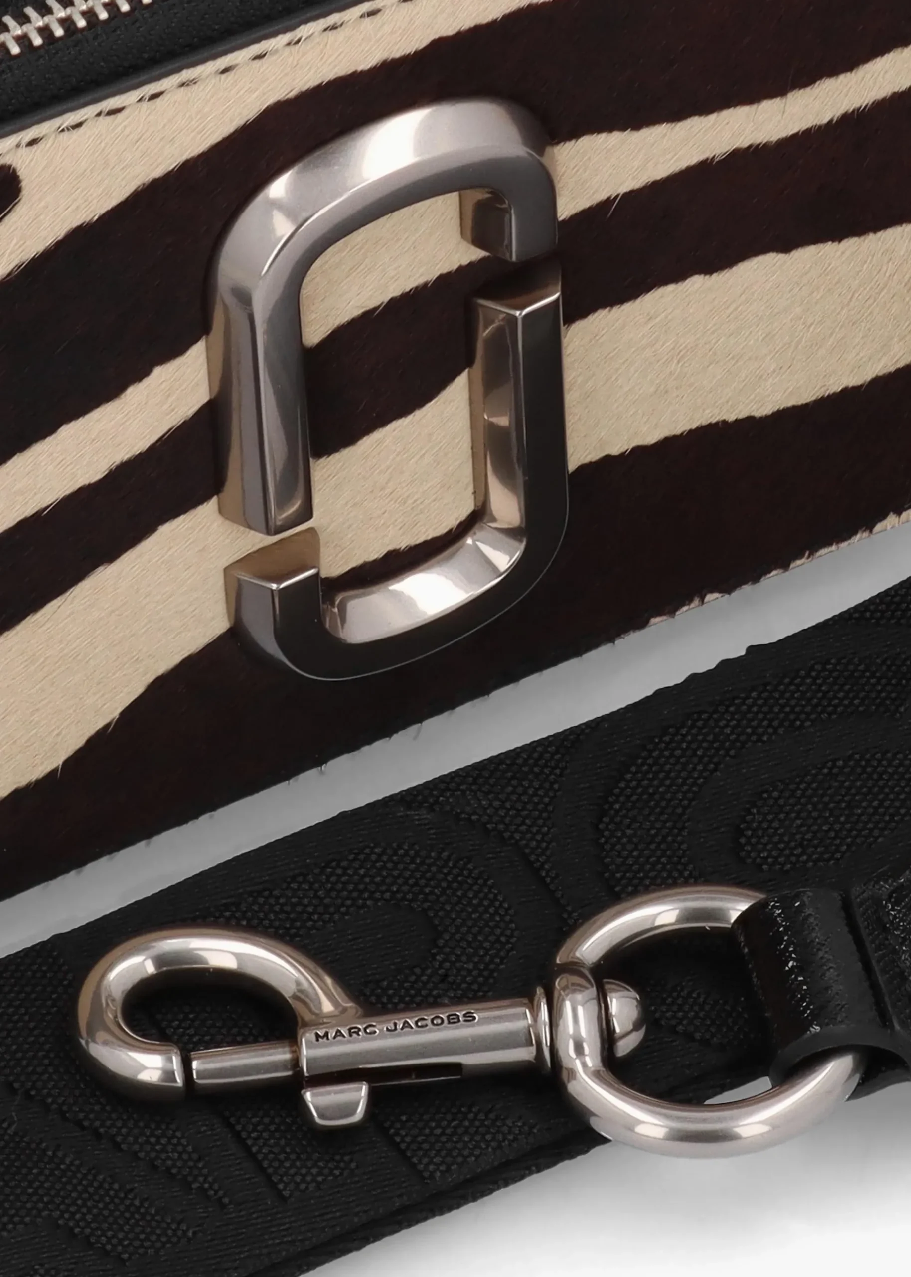 Marc Jacobs ‘The Zebra Calf Hair Snapshot’ camera bag is a timeless classic style that will see you through Season after Season. Crafted from premium saffiano leather with bold zebra calf hair insert, accented with shiny golden hardware. The secure double zip fastening compartments are ideal for carrying all your daily essentials, exterior slot pocket also features. A chunky logo cross body strap is the defining detail as well as Marc Jacobs double J branding, further branding is seen throughout.
