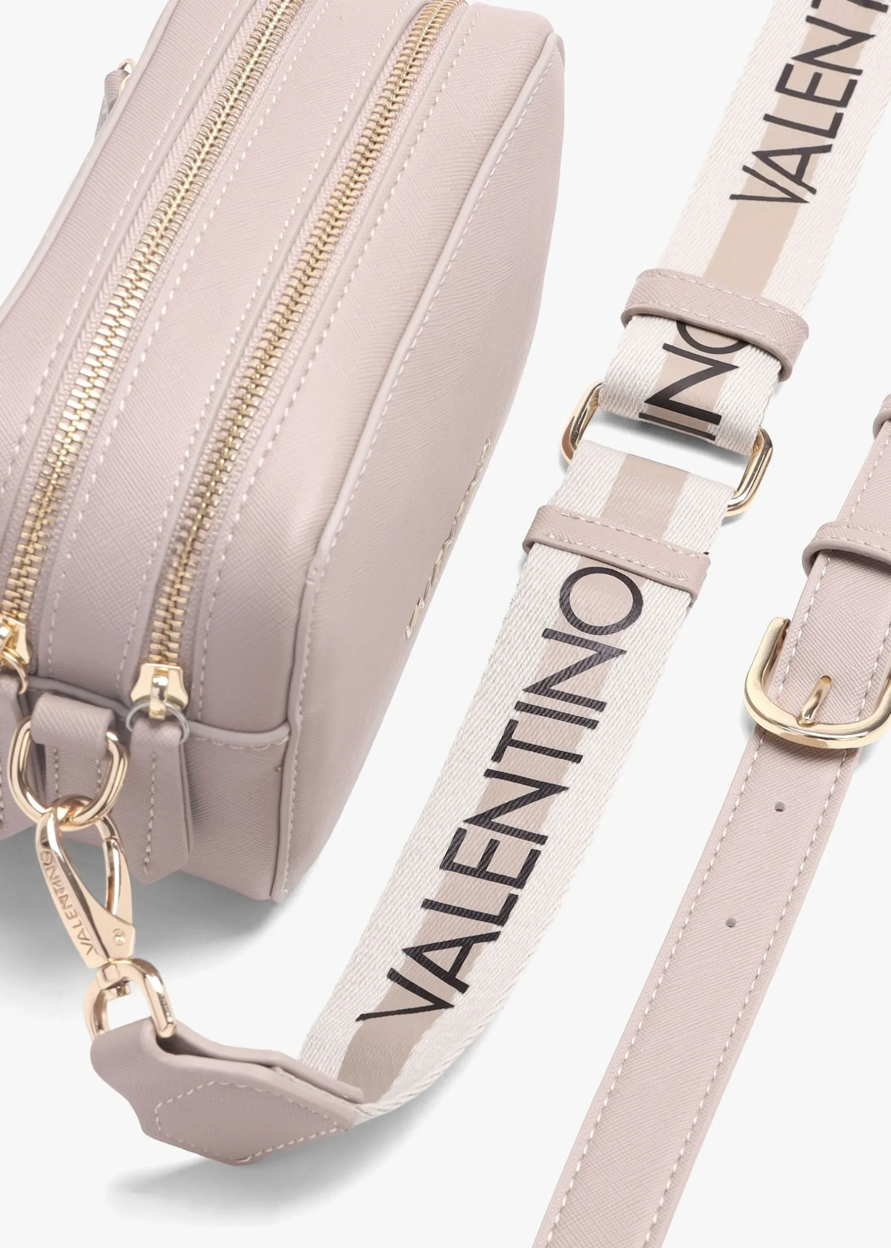 The ‘Zero’ camera bag from Valentino Bags eco-friendly collection is the perfect everyday style. Crafted from premium textured PU made from part recycled materials with polished gold tone hardware. The secure double top zip fastening compartments reveal handy inner zip and slot pockets, exterior zip pocket also features. Carry by either of the detachable straps. Signature Valentino Bags branding is seen throughout.