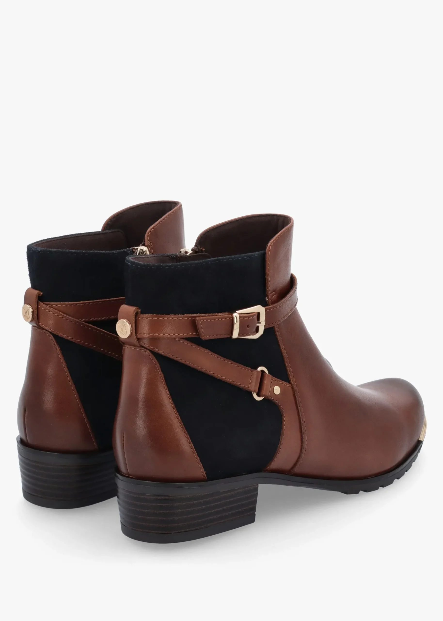These New Season ankle boots from Caprice are the perfect go to everyday style. Crafted from a premium leather and suedette upper with microfiber logo lining and a rubber sole. Zip fastening to the inner leg creates an easy wear. Buckle fastening ankle straps add detail as well as tonal top stitching, raised seaming and butterfly logo rivet. Signature Caprice branding is seen to the footbed and sole.