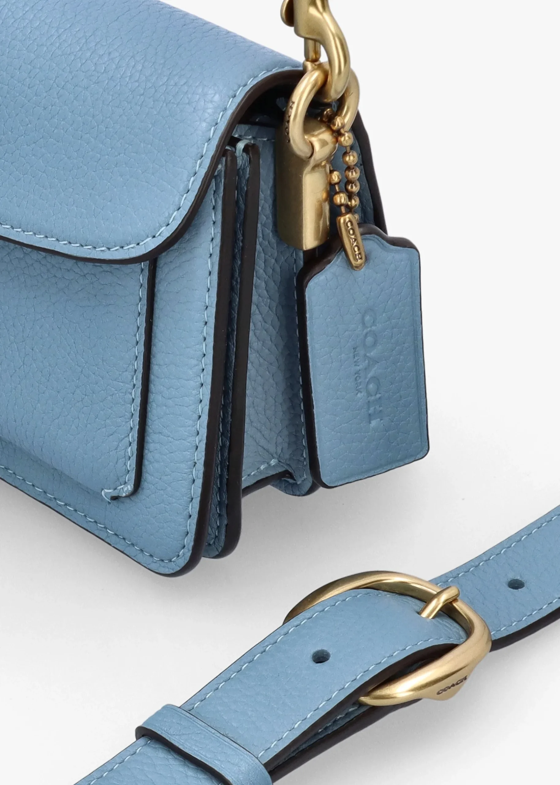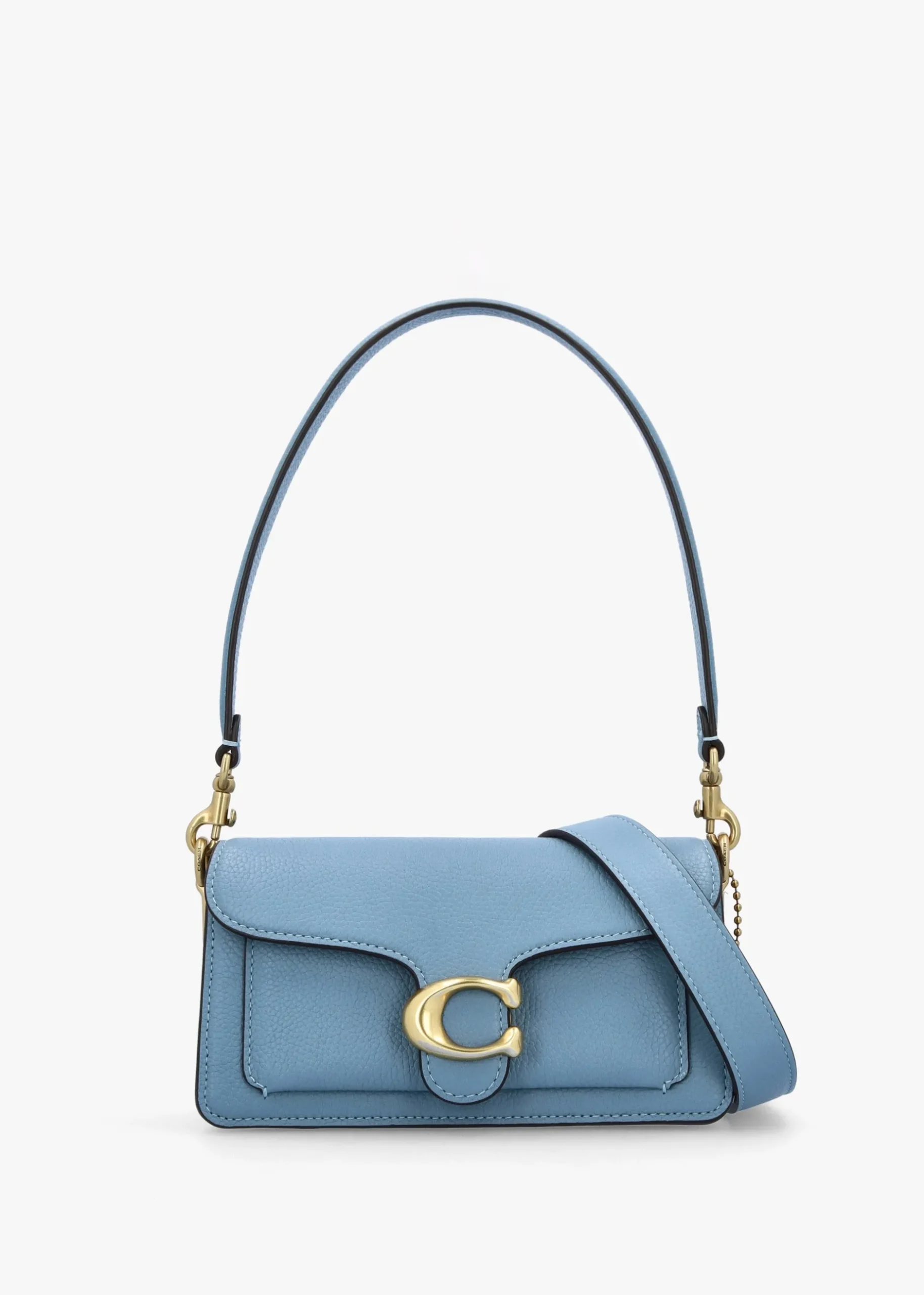 The ‘Tabby 20’ shoulder bag is a modern take on an archival 1970s COACH style. This everyday classic bag will see you through Season after Season. Crafted from premium polished pebbled leather with antique gold tone accents. The secure magnetic snap front flap reveals multiple handy inner compartments, further handy exterior slot pocket also features. Carry by either of the detachable straps. Classic ‘C’ logo motif adds detail as well as luggage tag style bag charm. Signature COACH branding is seen throughout.