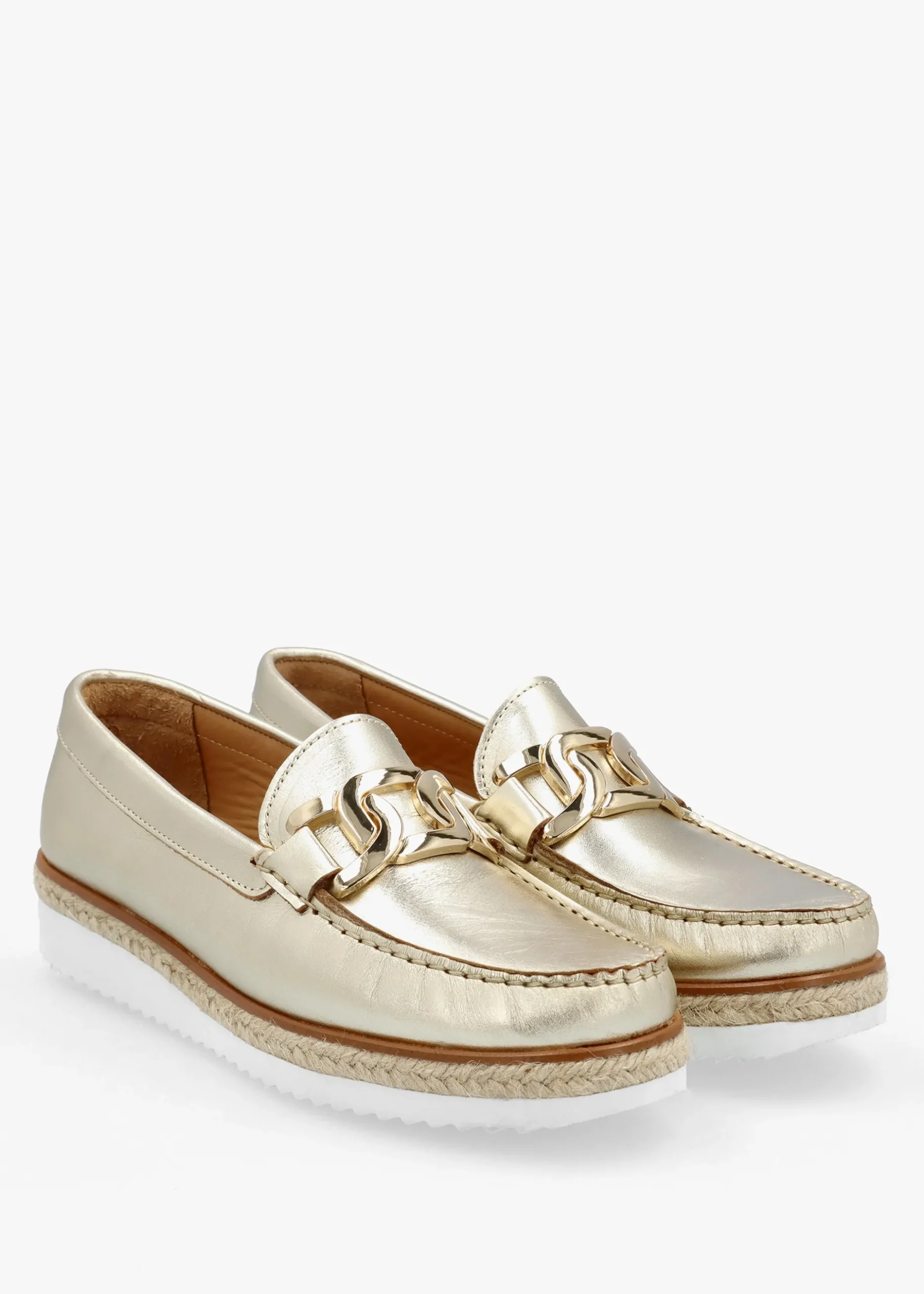 Ditch your heels this New Season and fashion the everyday ‘Peonie’ loafers from Daniel. Crafted from premium leather with leather lining, jute trim and a saw edge rubber sole. An easy to wear slip on style. Tonal top stitching, raised seaming and gold tone link hardware add detail to the upper. Signature Daniel branding is seen to the footbed.