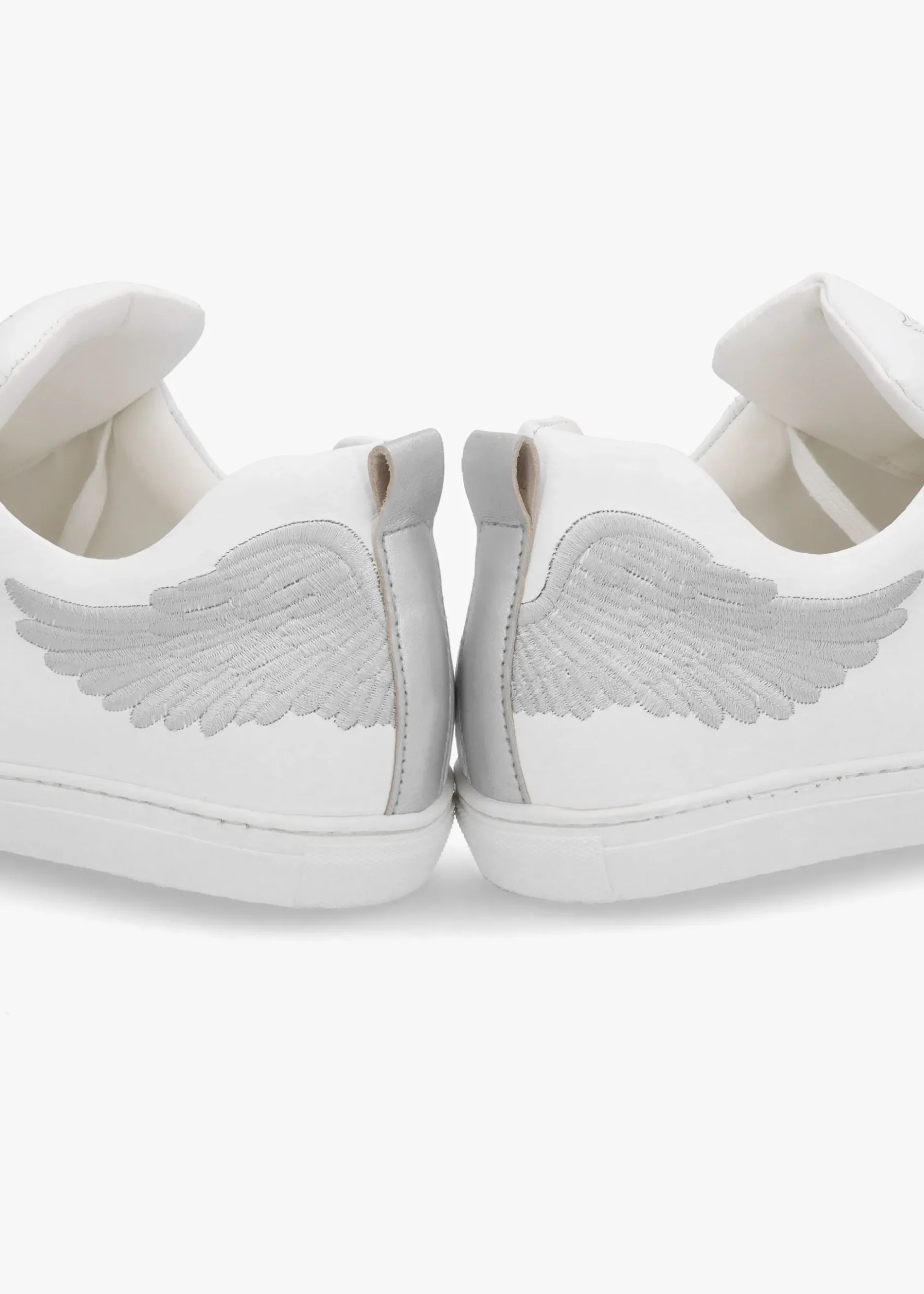 The ‘Angels Ease’ trainers are part of the New Season collection from Marté. This off-duty style is crafted from premium Italian soft nappa leather certified by the ‘Leather Working Group’ and features a comfy rubber sole. The lace system to the upper ensures the perfect fit. Embroidered wing design adds detail as well as contrasting silver pull tab and classic logo to the tongue. Signature Marté branding is seen to the foot-bed.