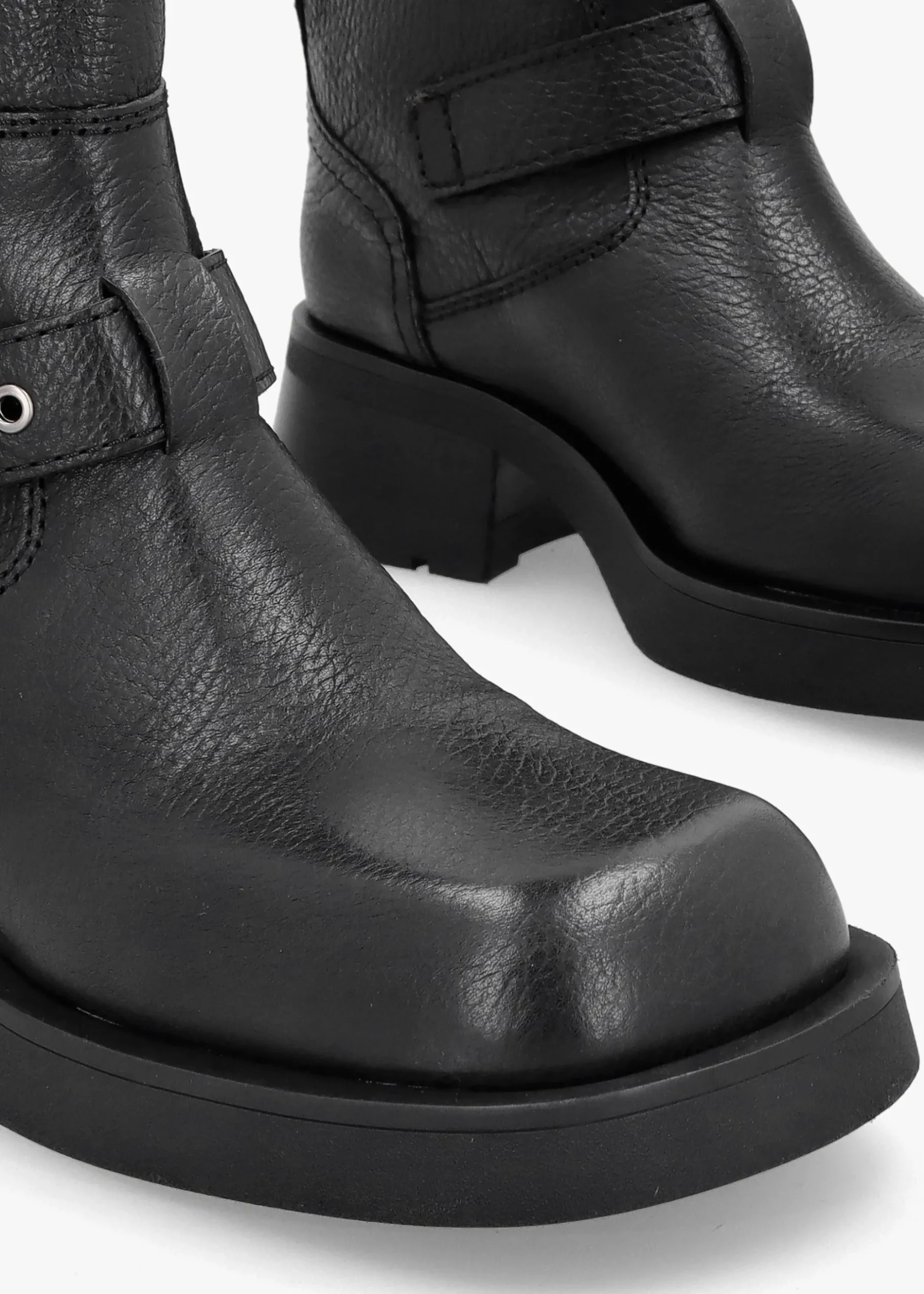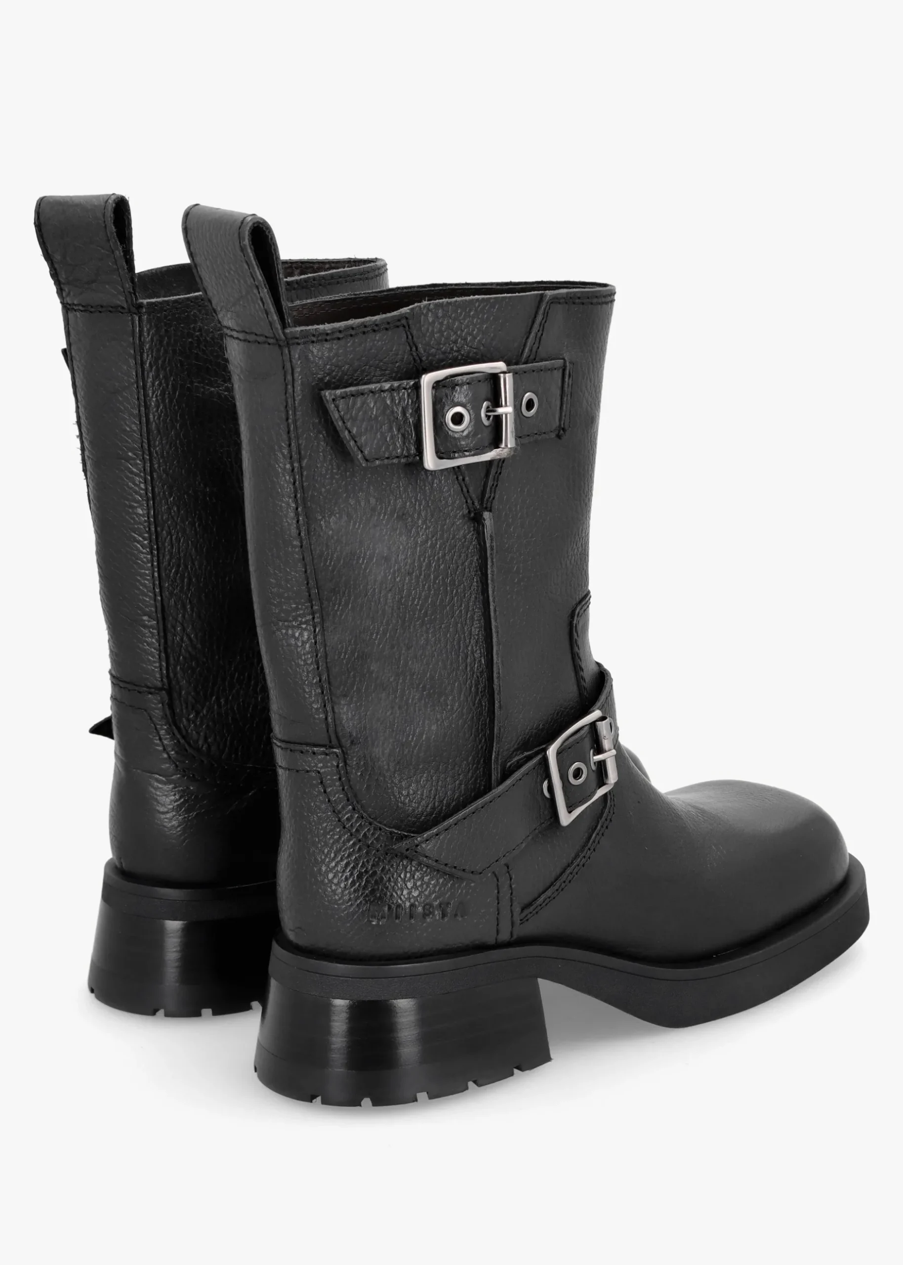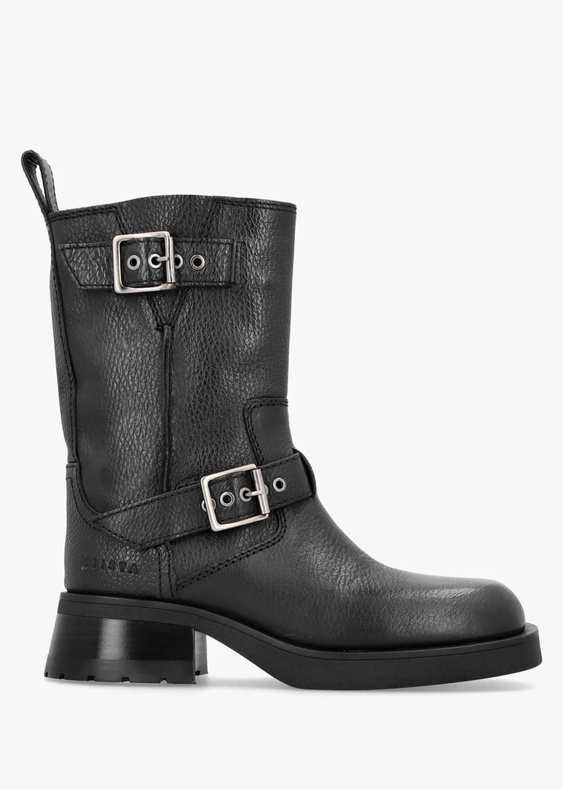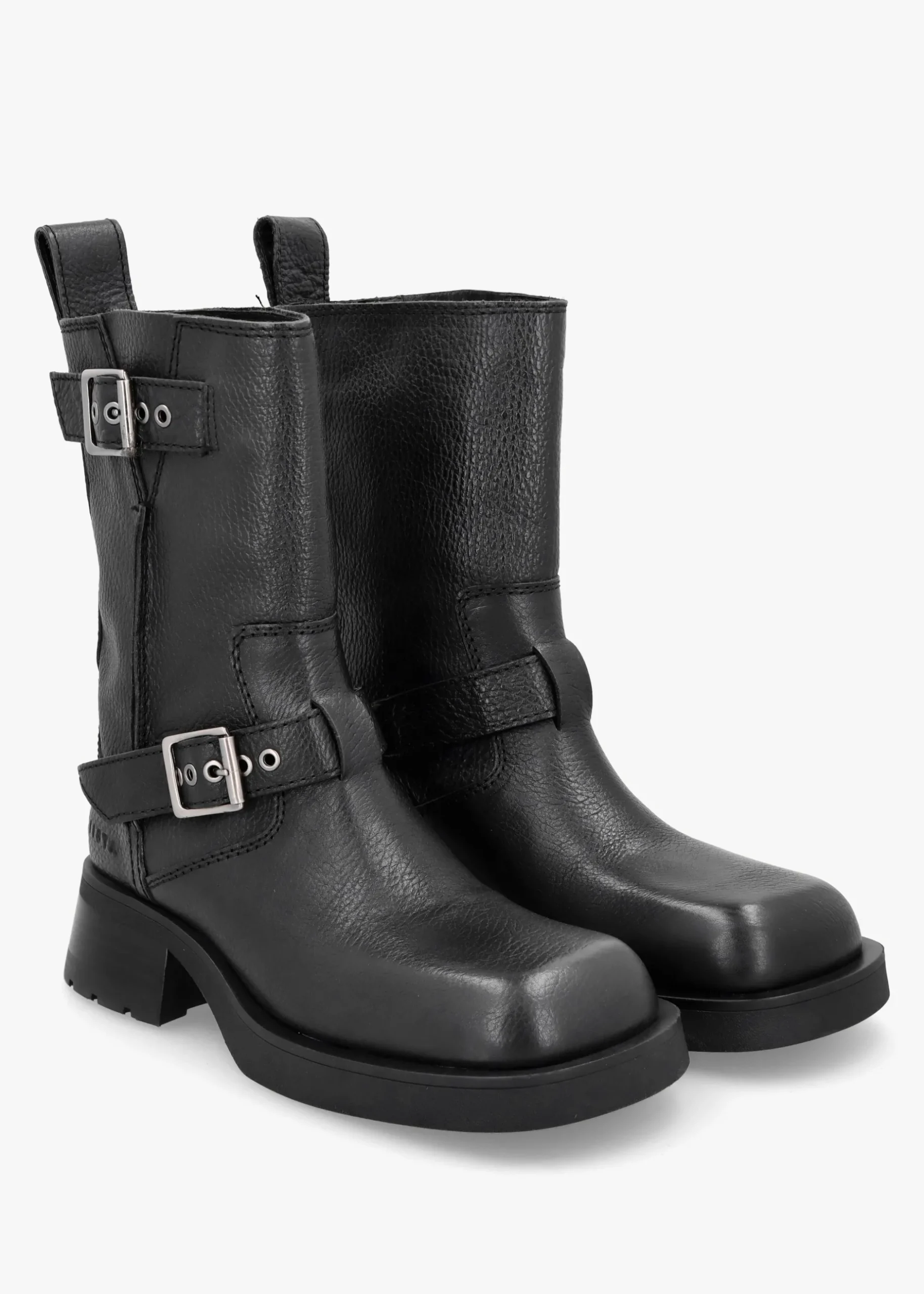 Add the chunky women’s ‘Renate’ biker style boots from MIISTA to your boots collection. This on trend style is crafted from a premium full grain cows leather upper with synthetic lining, memory foam insoles and a rubber sole. An easy to wear pull on style. Buckle fastening straps add detail to the upper as well as pull tab to the top-line. The exaggerated square toe and low heel make up the silhouette. Signature MIISTA branding is seen throughout.