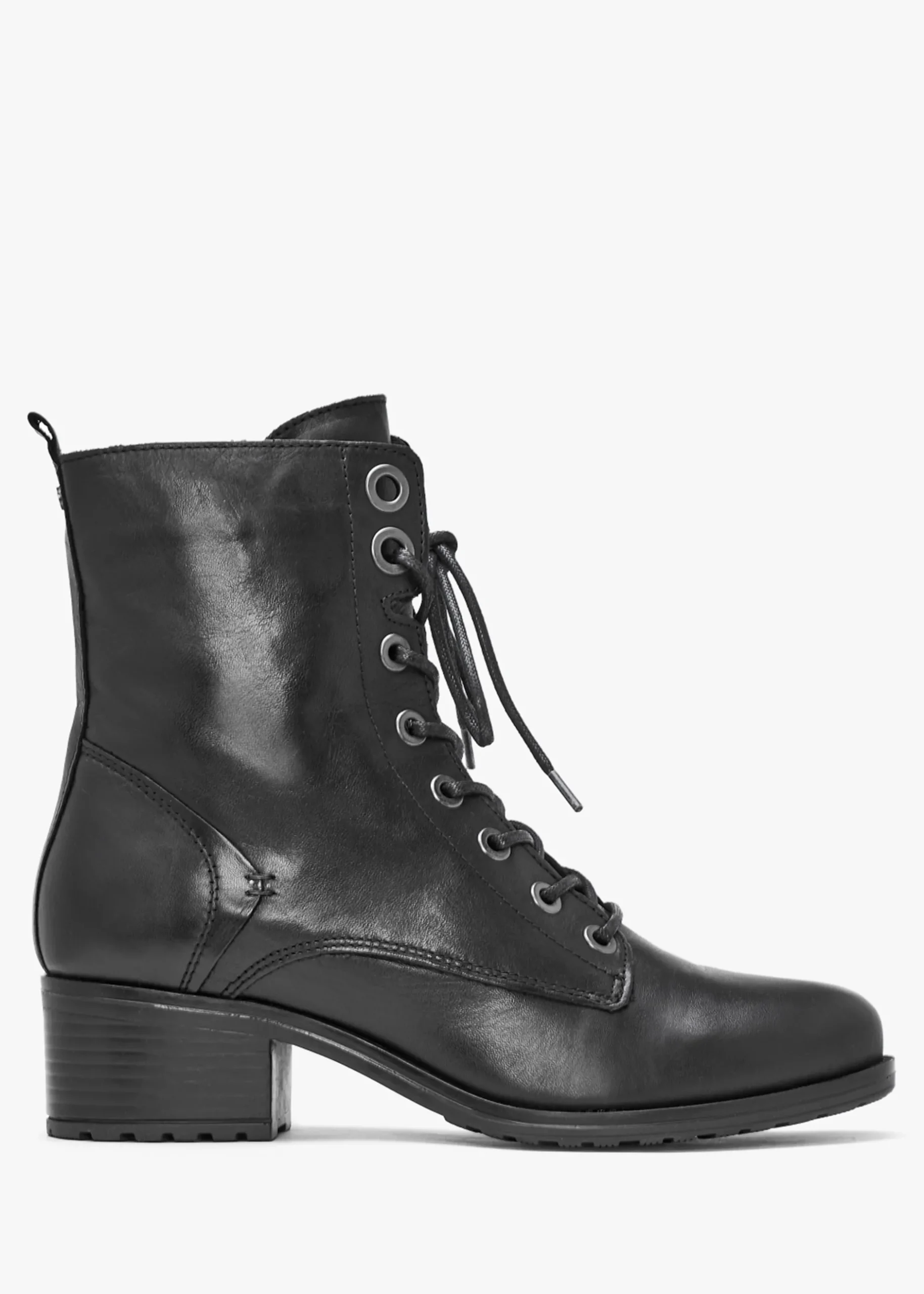 The ‘Bezzie’ ankle boots are part of the New Season from Moda In Pelle. This everyday style is crafted from a premium leather upper with part leather lining and a rubber sole. The inner side zip fastening creates an easy wear and the lace up upper ensures the perfect fit. Tonal top stitching and raised seaming add detail to the upper. The classic round toe and low block heel. Signature Moda In Pelle branding is seen to the foot-bed.