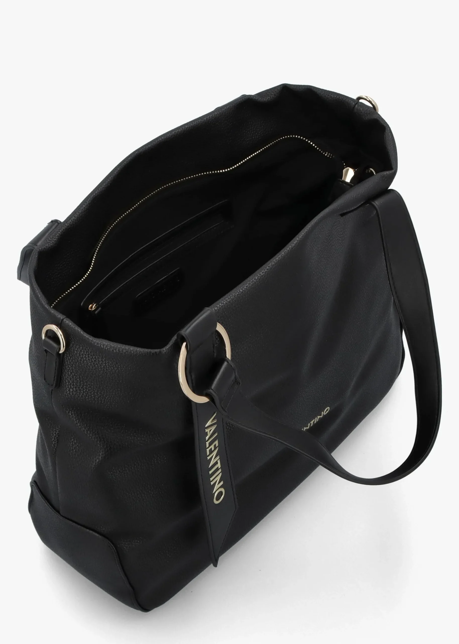 New to Daniel Footwear this Season the ‘Peonies’ shopper bag from Valentino. This spacious carryall everyday style is crafted from premium pebbled PU made with part recycled materials with polished gold tone accents. The secure top zip fastening reveals the single main compartment and handy inner zip and slot pockets. Carry by the top handles or the detachable strap. Valentino branding adds detail throughout.