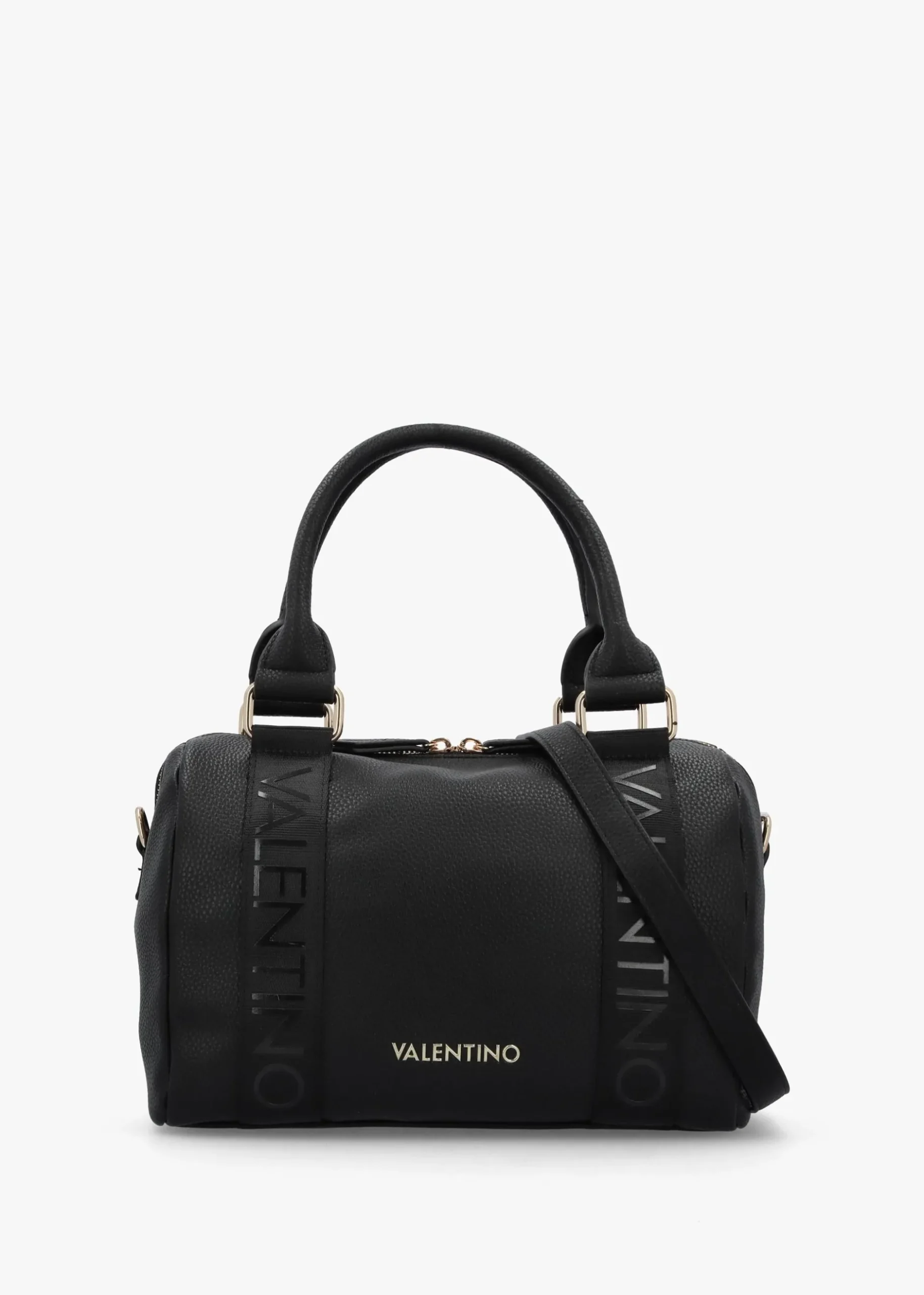 Add the ‘Twig’ barrel bag from Valentino to your bag collection. This New Season carryall style is crafted from premium pebbled PU made from part recycled materials with polished gold tone accents. The secure top zip fastening reveals the single main compartment and features handy inner zip and slot pockets for all your smaller essentials. Tonal webbed logo detail features both front and back of the bag. Signature Valentino branding is seen throughout.