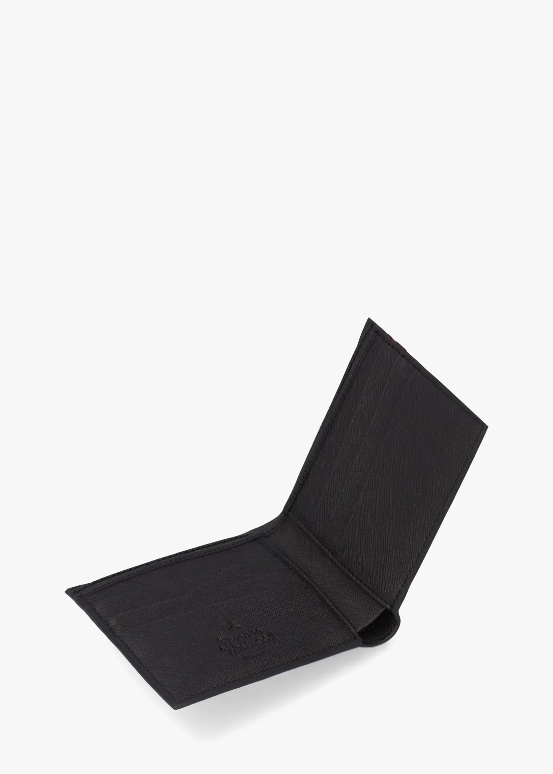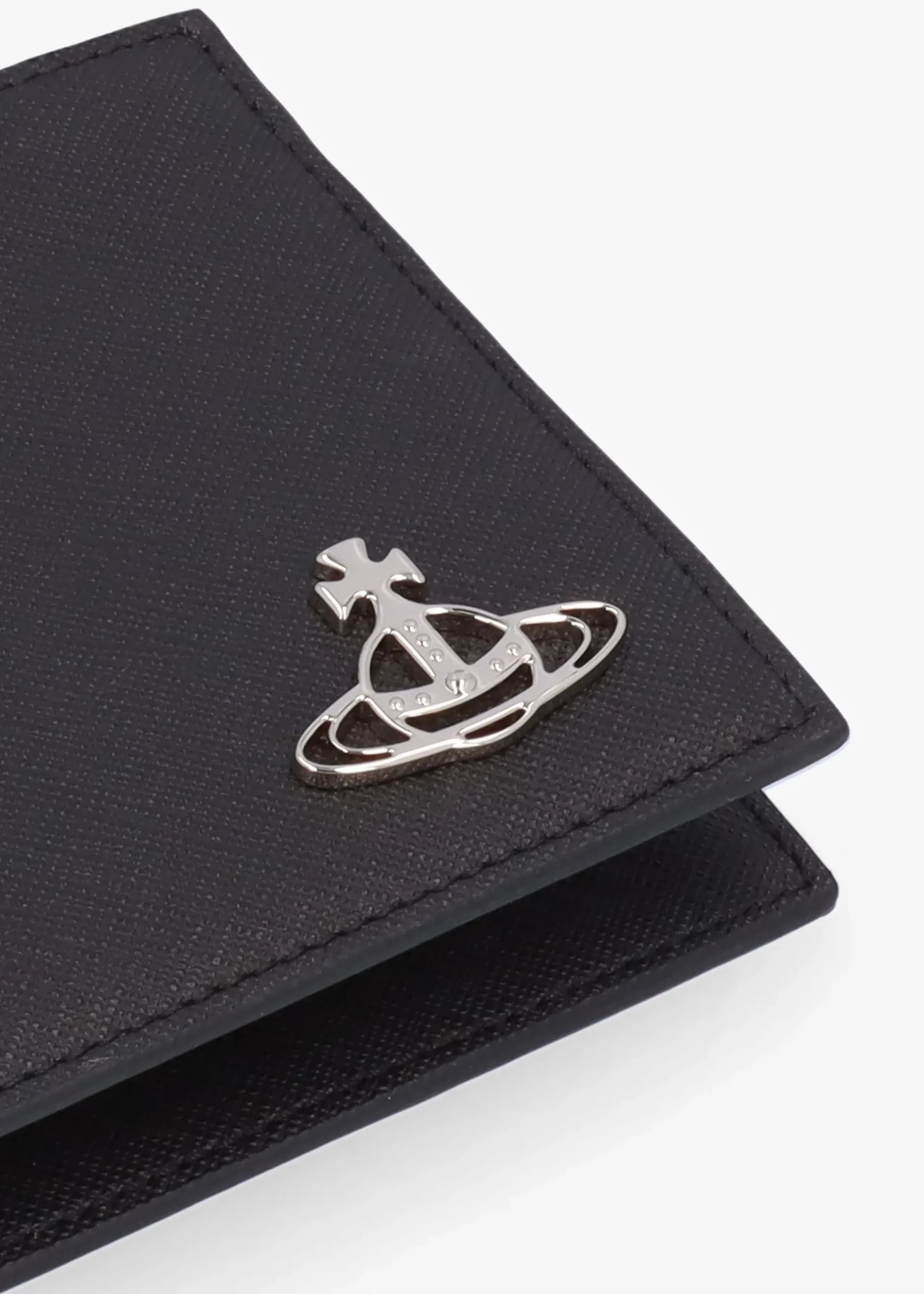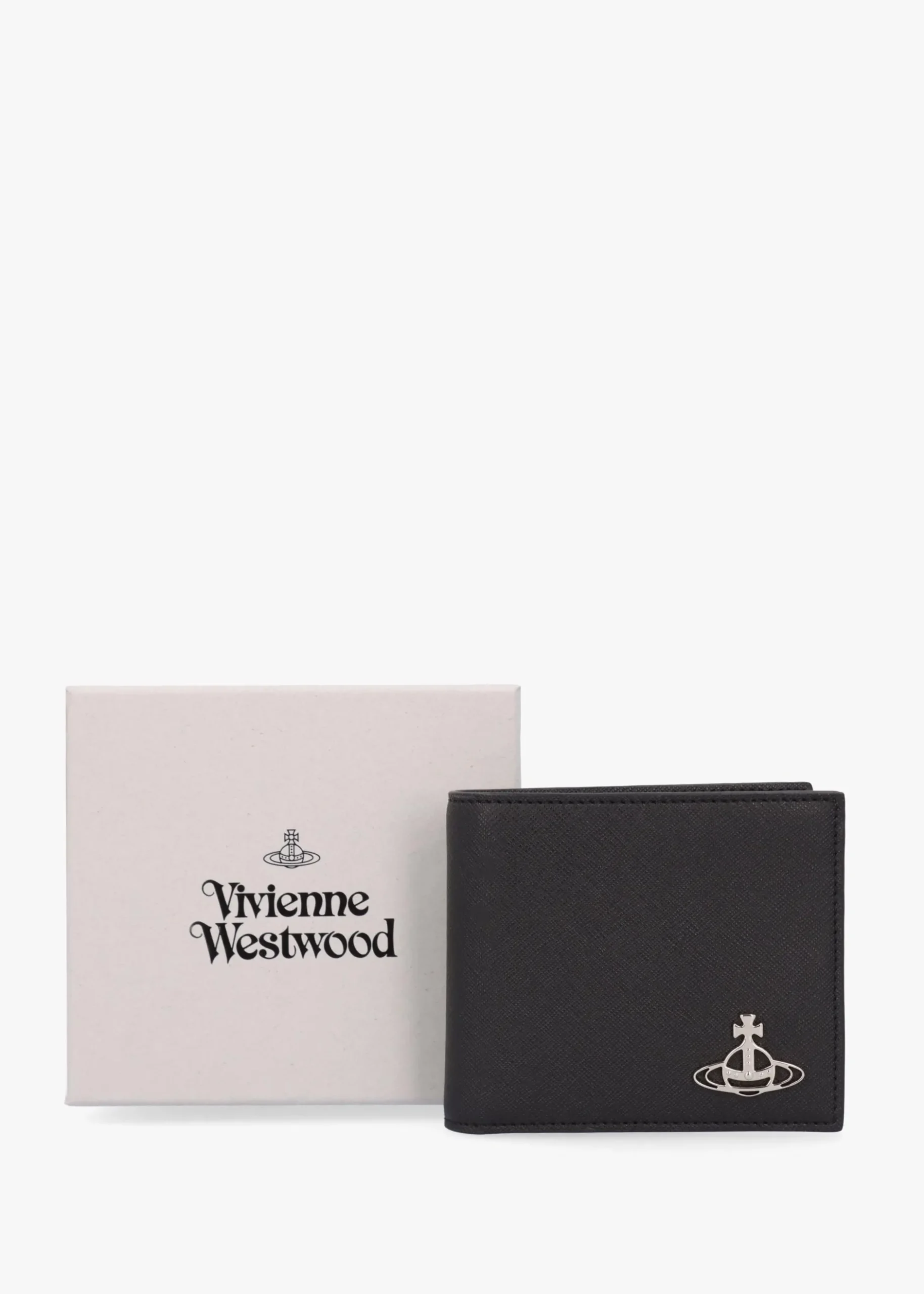 Add this New Season man’s wallet from Vivienne Westwood to your accessories collection. A simple classic style crafted from premium saffiano PU with silver tone hardware. This square silhouette features multiple inner compartments. Iconic ‘Orb’ plaque adds detail. Signature Vivienne Westwood branding is seen throughout.