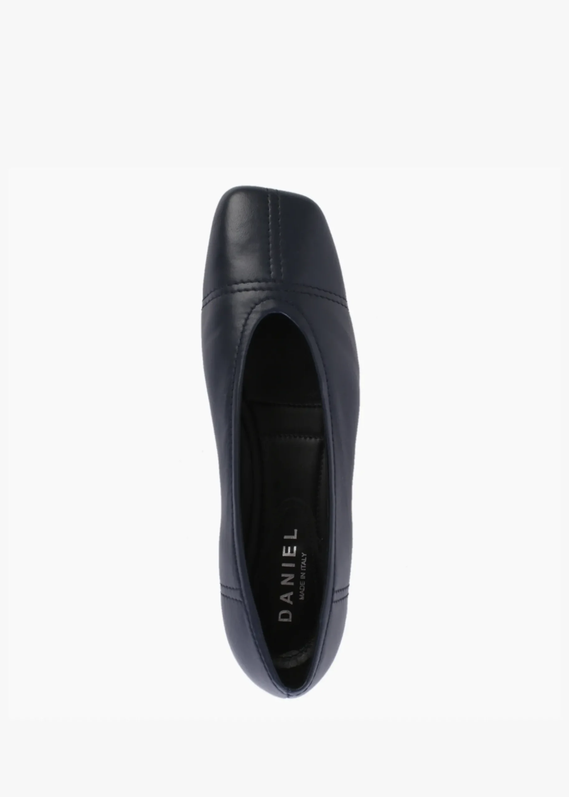 Ditch your heels and fashion the ‘Angled’ ballerina pumps from Daniel Footwear. These stylish everyday flats are crafted from a premium soft leather upper with luxurious leather lining and a man-made sole. An easy to wear slip on style. The square toe and flat sole make up the silhouette. Tonal top stitching adds detail to the upper. Signature Daniel branding is seen to the foot-bed.