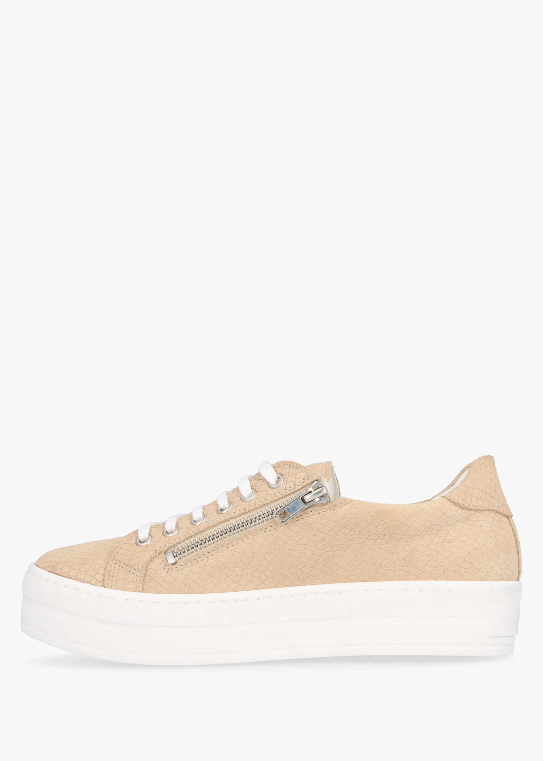 Add the New Season ‘Tippie’ trainers from Daniel Footwear to your off-duty wardrobe. Crafted from a premium leather upper in a chic reptile design with part leather lining and a comfy rubber sole. The lace up upper ensures the perfect fit while the double zip fastening sides create an easy wear. The classic round toe and slab unit make up the silhouette. Signature Daniel branding is seen to the foot-bed.
