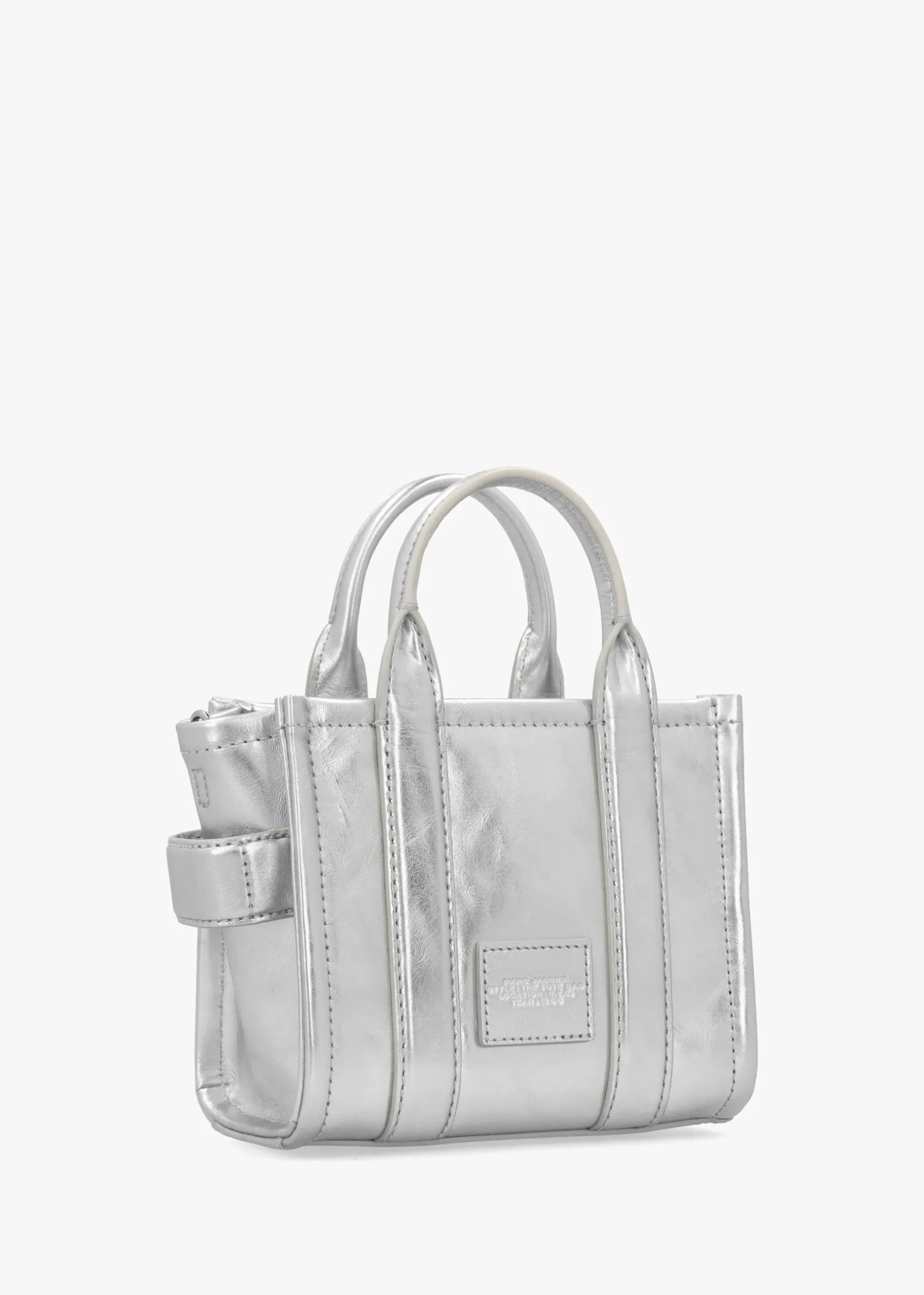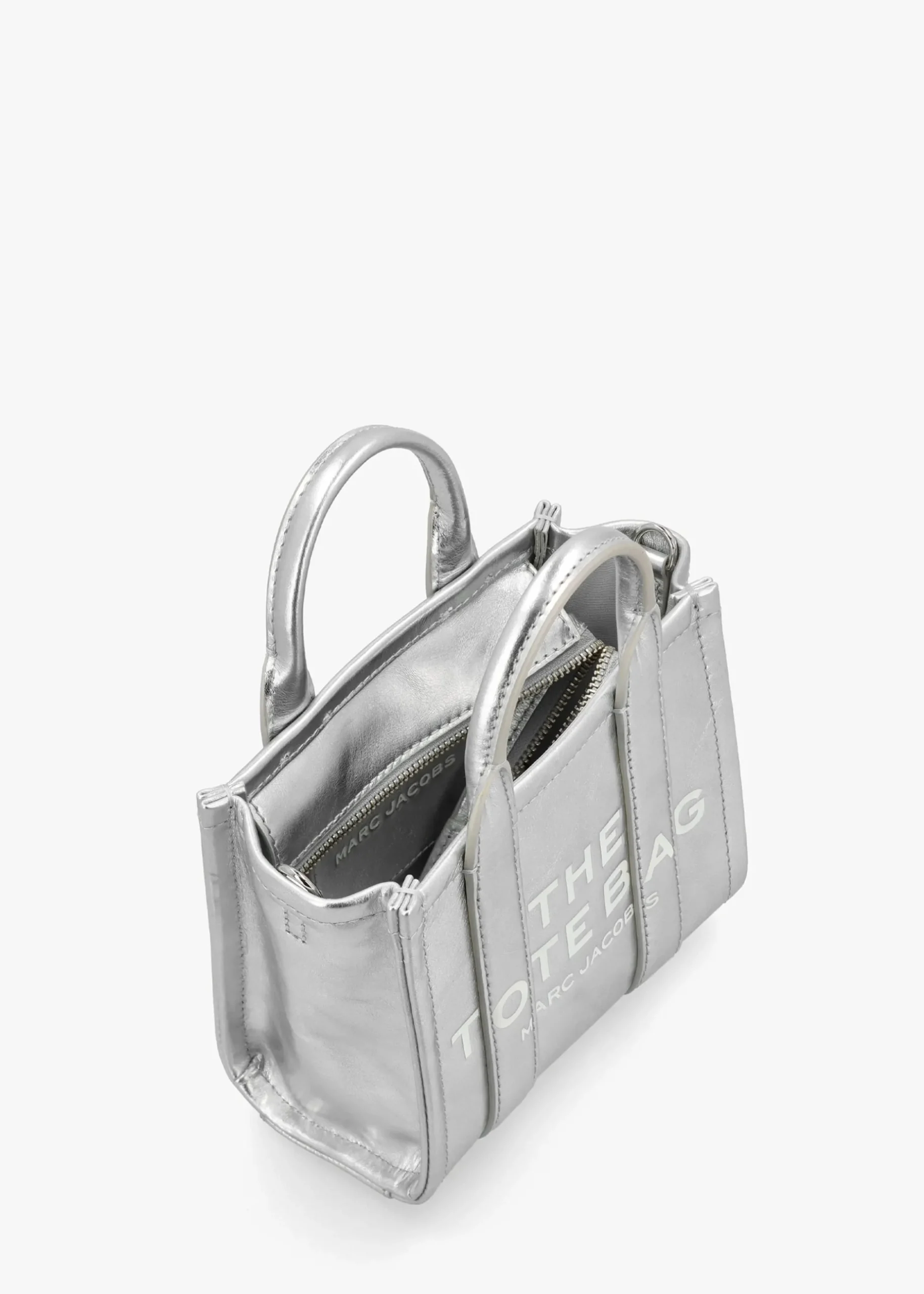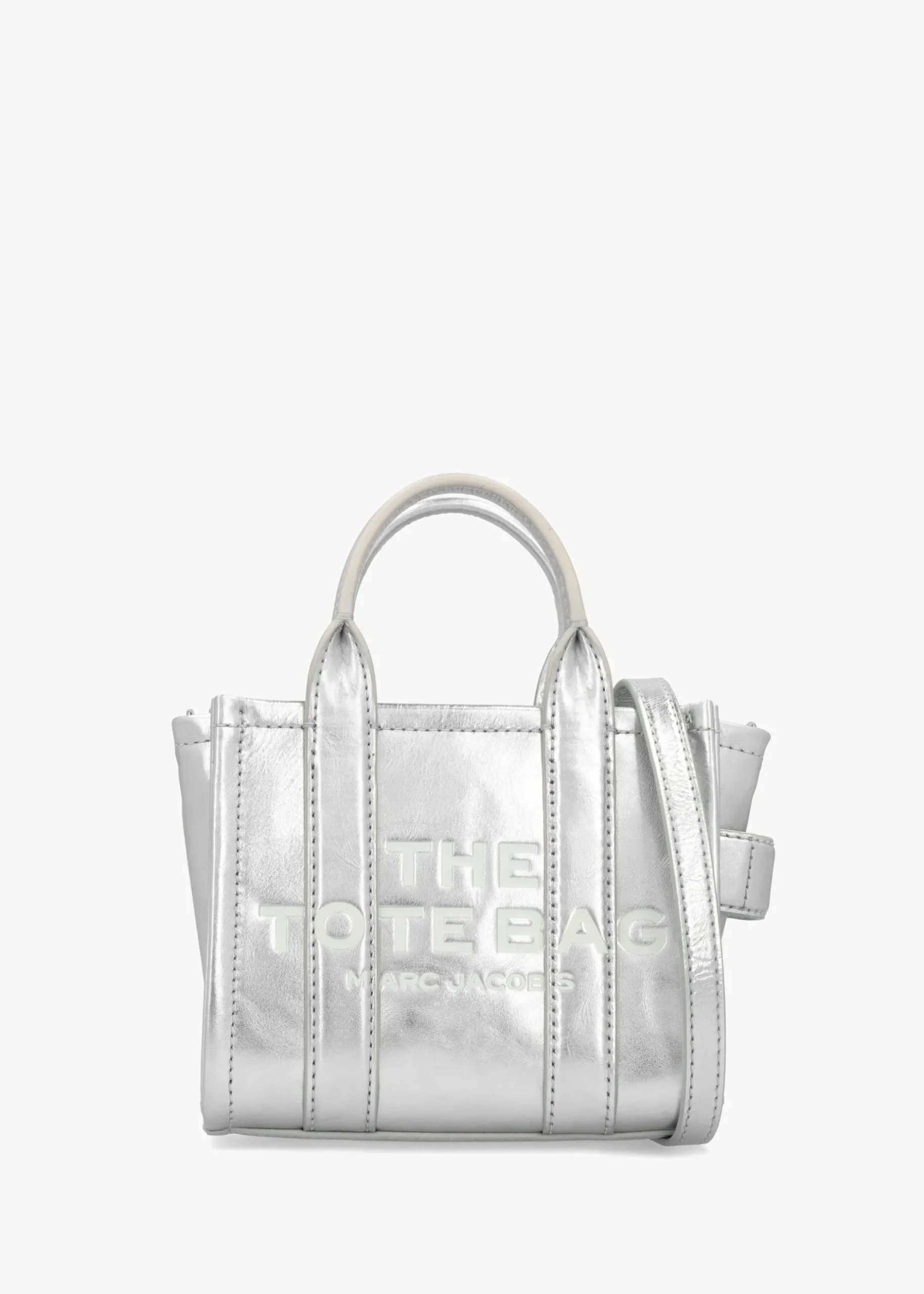 ‘The Metallic Leather Cross-Body’ tote bag from Marc Jacobs is a go to carry all style. This New Season day to night bag is crafted from premium metallic leather with polished sliver tone accents. The secure top zip fastening reveals a single main compartment. Carry by the grab handles or the detachable strap. Bold debossed logo adds detail to the front of the bag. Signature Marc Jacobs branding is seen throughout.