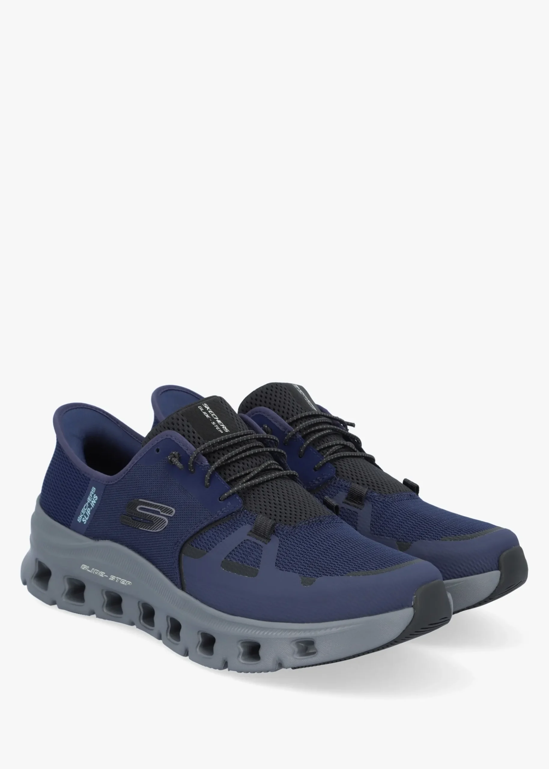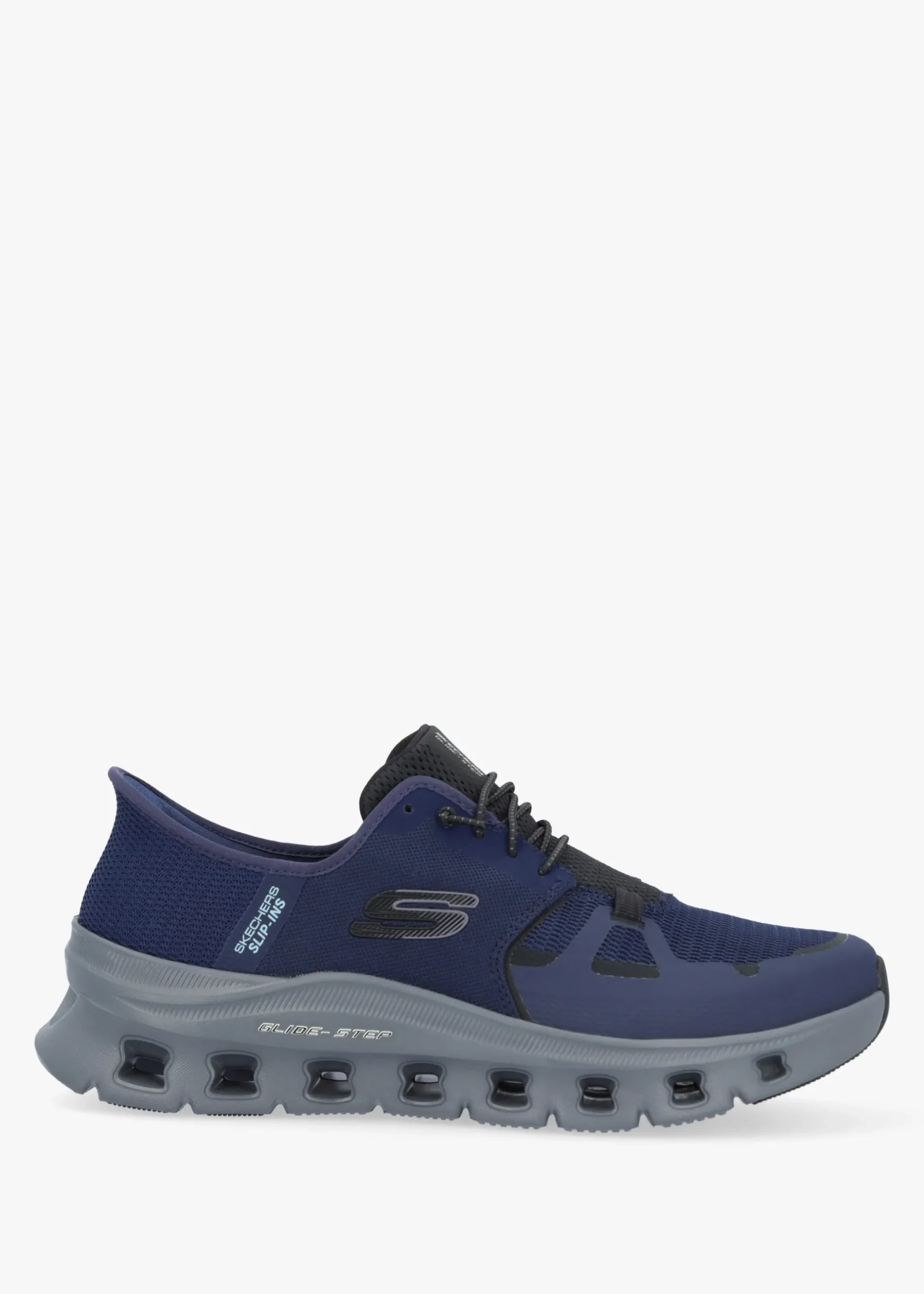 Add the men’s ‘Slip Ins Glide-Step Pro’ trainers from Skechers® to your off-duty wardrobe. This vegan style is crafted from an engineered knitted upper with Skechers® exclusive heel pillow™, Skechers® air-cooled memory foam® insole and a glide-step® midsole. The stretch laces create an easy wear. Signature Skechers® branding is seen throughout.