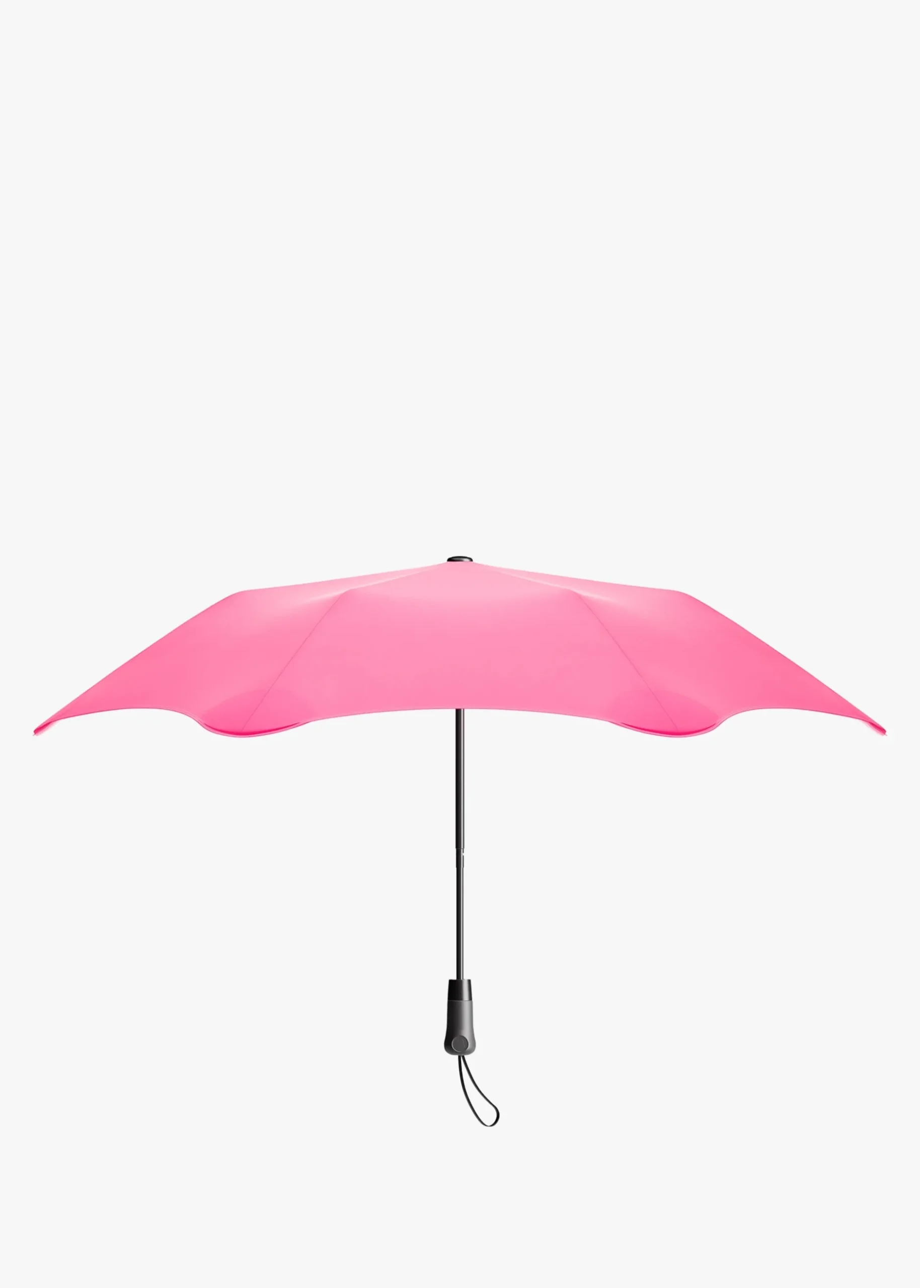 Add the simple yet stylish ‘Metro’ umbrella from BLUNT to your accessories collection. This compact style features a uniquely shaped canopy silhouette with rigid wing edges, made up of the brands six patented BLUNT tips. A go-to-style for those unexpected rainy days, a daily must have that will fit neatly in any of your bags. Signature BLUNT branding adds detail.