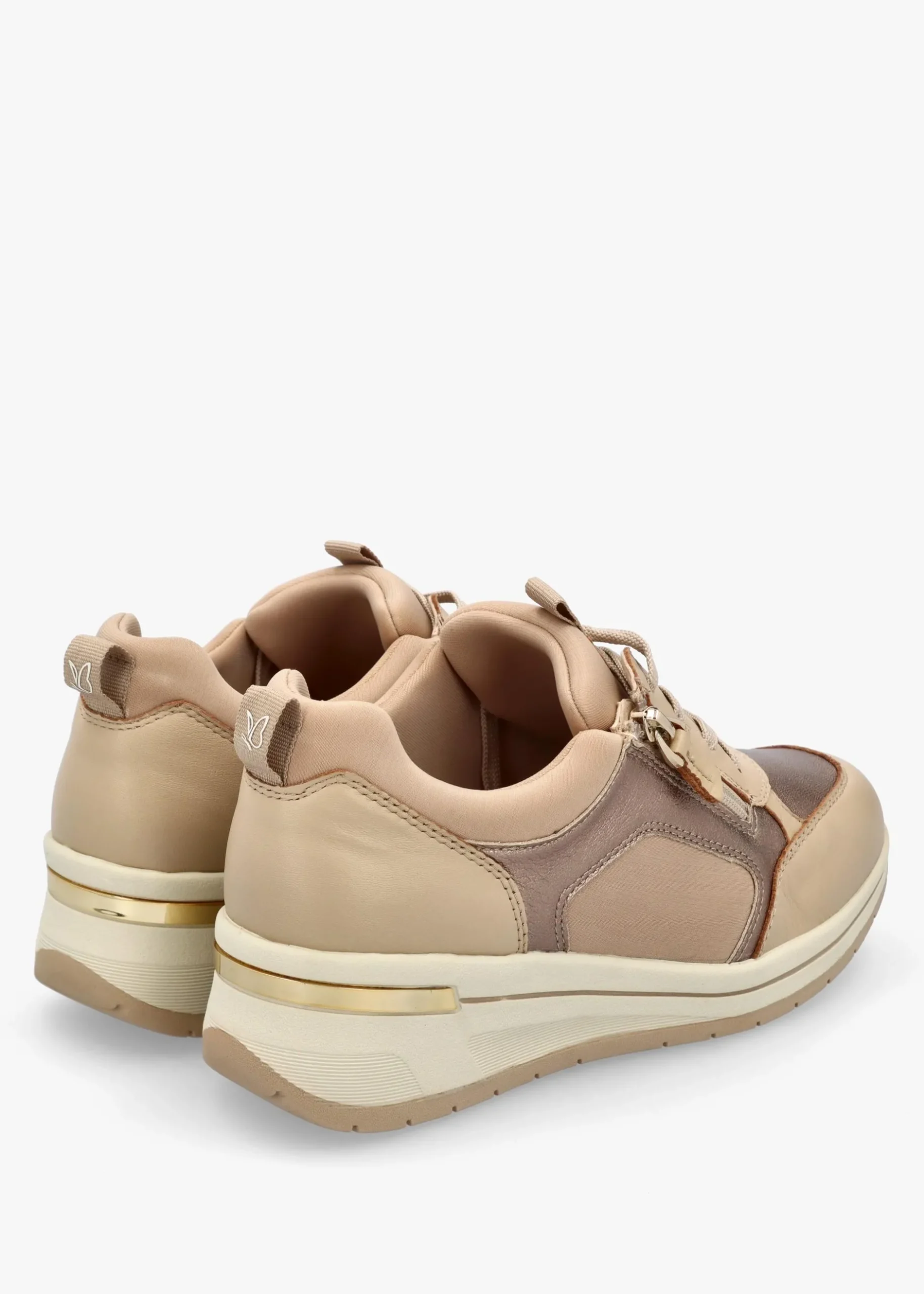Add these fashion sporty trainers from Caprice to your off-duty wardrobe. This New Season style is crafted from a premium leather and neoprene upper with textile lining and a decorative low wedge sole. The classic lace up upper ensures the perfect fit. Functional exterior side zip adds detail as well as butterfly logo and webbed pull tabs. Signature Caprice branding is seen to the footbed and sole.