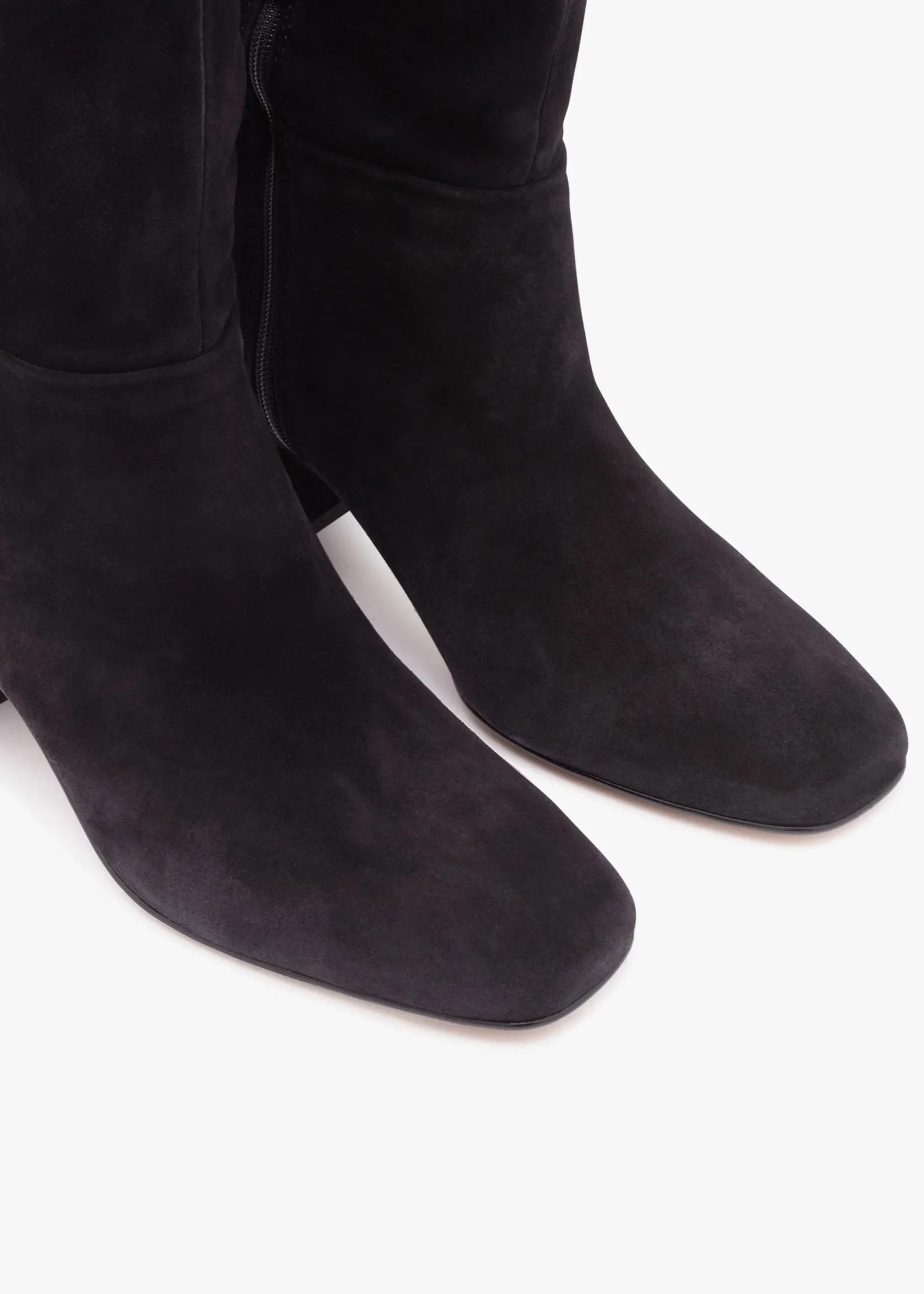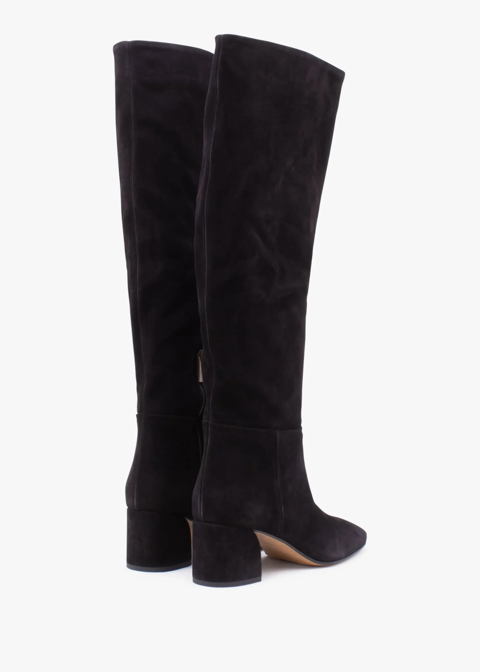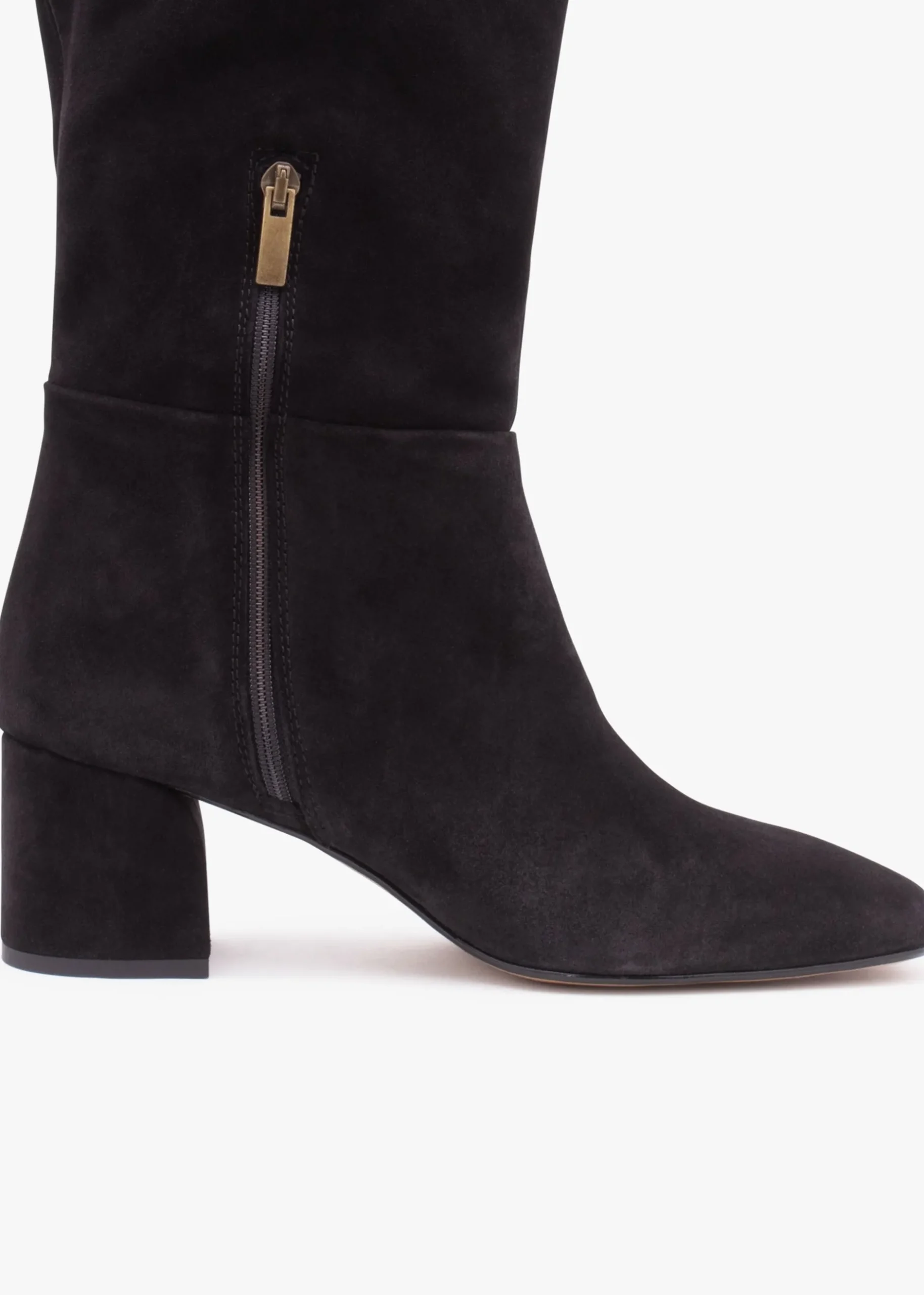 The ‘Lancey’ knee boots are part of the New Season collection from Daniel Footwear. This simple yet chic timeless style with see you through Season after Season. Crafted from a premium suede upper with textile lining and a man-made sole. An easy to wear pull on style featuring half zip fastening to the inner leg. The square toe and mid-block heel make up the silhouette. Signature Daniel branding is seen to the foot-bed.