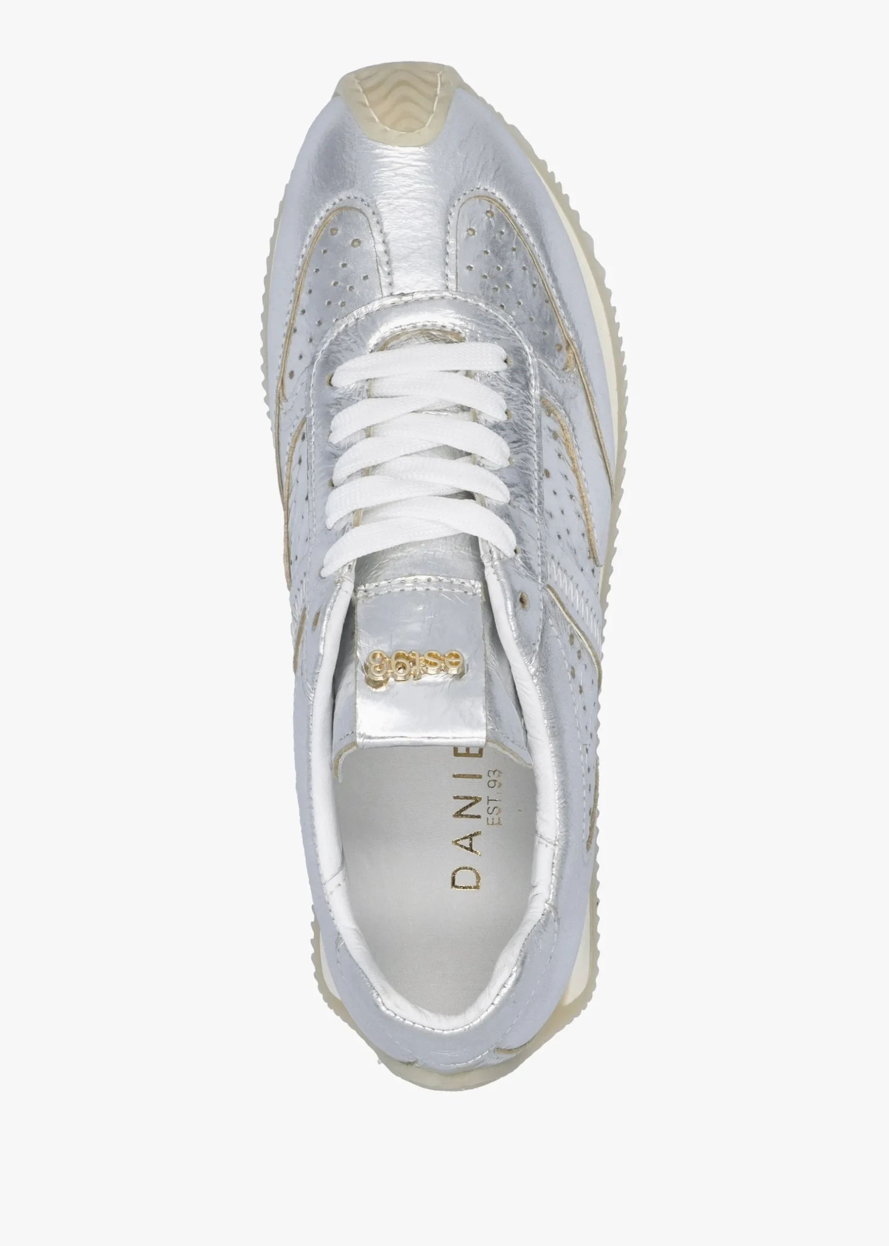 Add the New Season ‘Mated’ runner trainers from Daniel Footwear to your off-duty wardrobe. This retro inspired runner style is crafted from a premium leather upper featuring a perforated design with textile lining, cushioned footbed and a comfy rubber sole. The lace up upper ensures the perfect fit. ‘EST.93’ hardware adds detail to the tongue, a nod to the year our band was created. Signature Daniel branding is seen to the footbed.