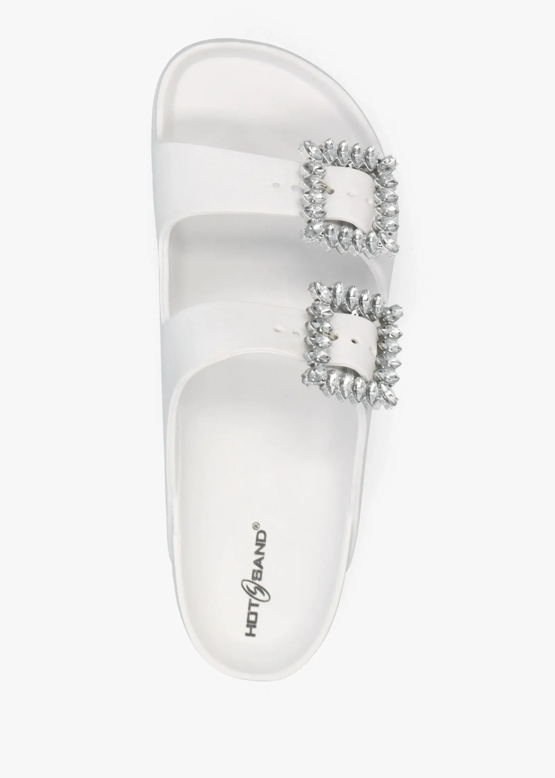 Add these classic mules to your Summer wardrobe, perfect for off-duty and beach days. An easy to wear slip on style featuring two strap upper with statement jewel embellished buckles. Signature Hot Sand branding is seen to the footbed.
