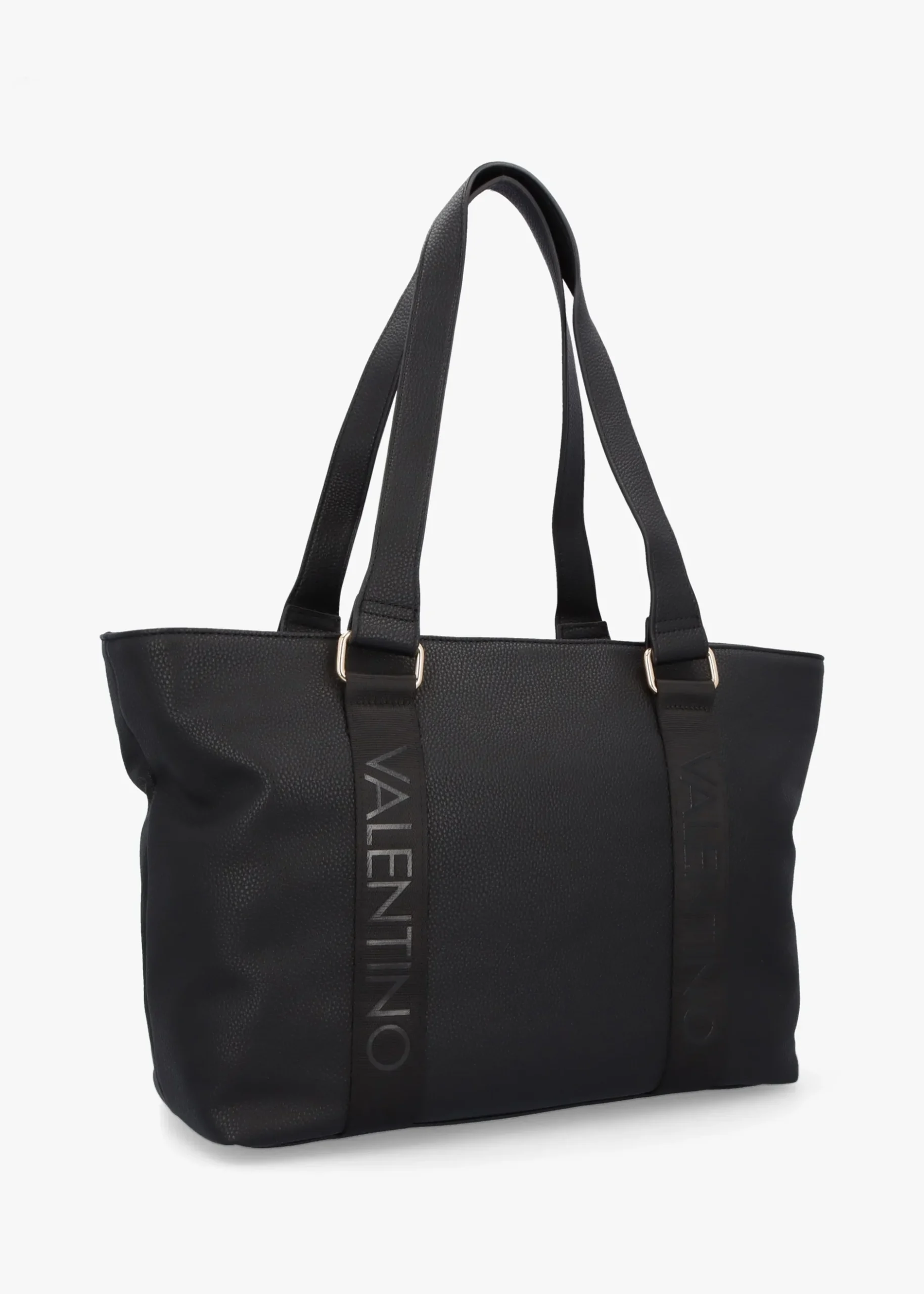 Add the super spacious ‘Twig’ shopper bag from Valentino to your bag collection. This New Season carryall style is crafted from premium pebbled PU made from part recycled materials with polished gold tone accents. The secure top zip fastening reveals the single main compartment and features handy inner zip and slot pockets for all your smaller essentials. Tonal webbed logo tape adds detail to both front and back of the bag. Signature Valentino branding is seen throughout.